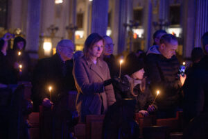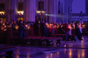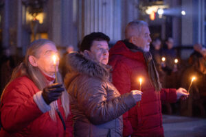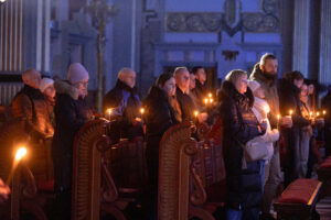 Podczas modlitwy każdy z wiernych otrzymał świecę, symbol światła Chrystusa, który rozświetla mroki codzienności oraz grzechów. Delikatny blask świec współtworzył atmosferę skupienia i kontemplacji.