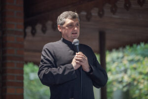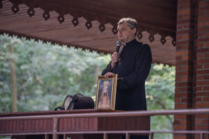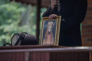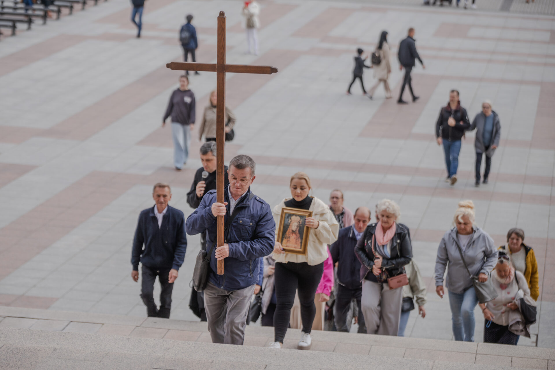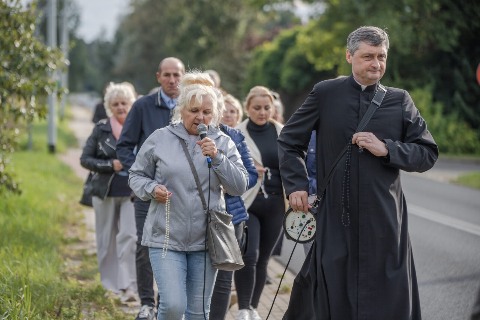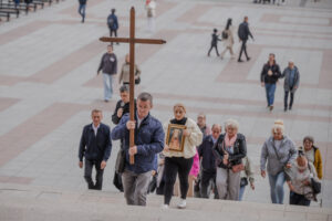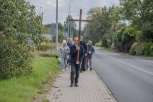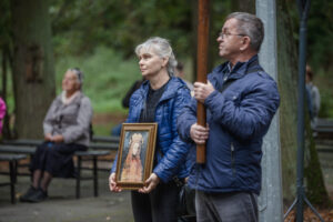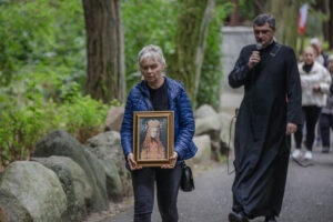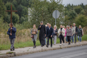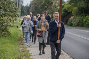 „W tamtym roku mieliśmy zaszczyt nieść obraz do bazyliki. W tym roku, gdy dowiedzieliśmy się, że też odbędzie się procesja upamiętniająca przyniesienie obrazu w stronę bazyliki, to też się wybraliśmy. Chcemy, żeby Maryja była w naszych sercach. Zawierzamy jej tu nasze rodziny, w szczególności nasze dzieci, modlimy się na różańcu, który jest prowadzony przez drogę” – mówiła mieszkanka Grąblina, która wzięła udział w procesji po raz drugi.