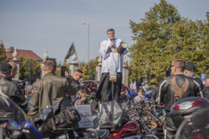 „Cieszymy się że pogoda dopisała, cieszymy się, że była duża frekwencja. Wszyscy bezpiecznie dojechali i wszyscy bezpiecznie wrócą. Mamy zapewnienia, że policja czuwa nad bezpieczeństwem na drogach. Sezon zaczęliśmy w Licheniu i tu też kończymy. Zaczynamy bezpieczną jazdą i kończymy też w taki sposób. Jesteśmy wdzięczni za pomoc, szczególnie księdza kustosza, który angażuje się w to wydarzenie, i zawsze jest nam tu miło być, więc będziemy wracać liczniejsi”.