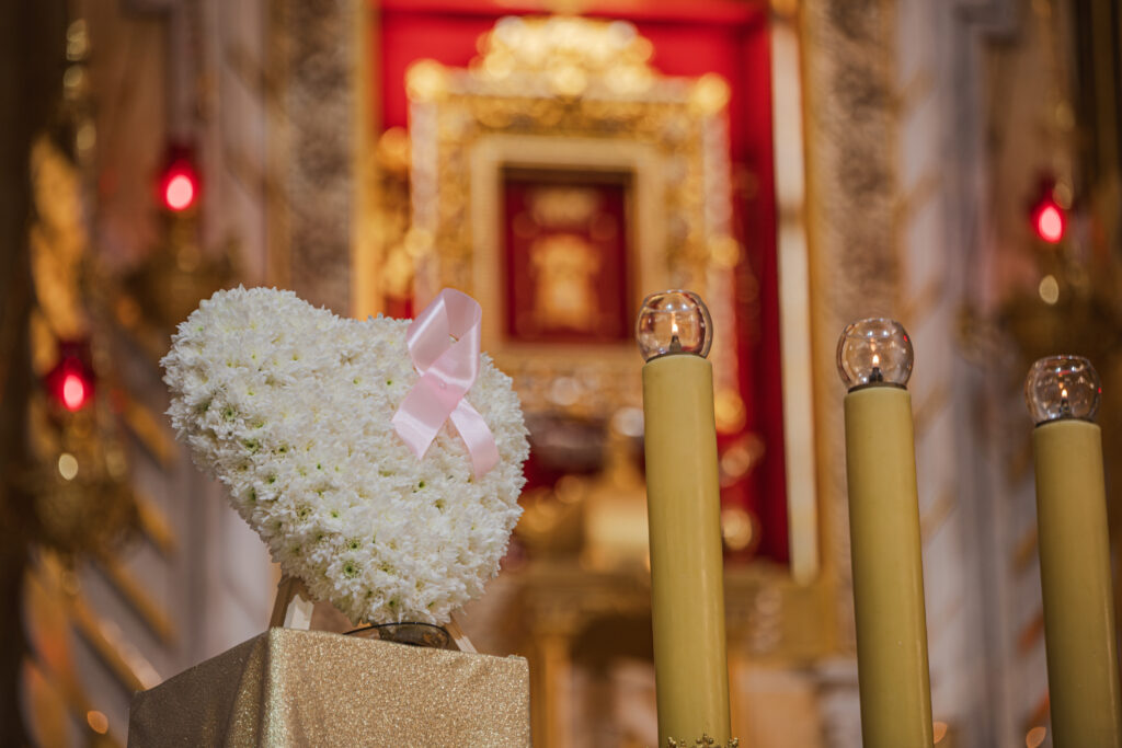 Tego dnia wiernym obecnym w licheńskiej bazylice towarzyszył symbol „Amazonek”, czyli różowa wstążka, którą z dumą przypinali do ubrań. Podobny symbol pojawił się również w ołtarzu – serce z margaretek z różową wstążką. Wszystko po to, by zsolidaryzować się z osobami dotkniętymi chorobą raka piersi, tak jak jedna z wchodzących do bazyliki kobiet, która przyznała, że na Mszę św. przyjechała aż z Mazur, by pomodlić się za swoją koleżankę.