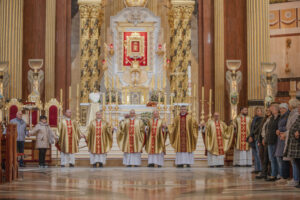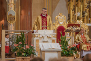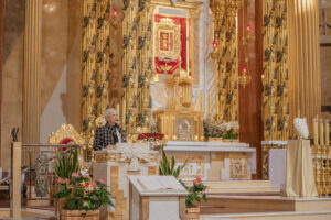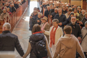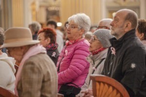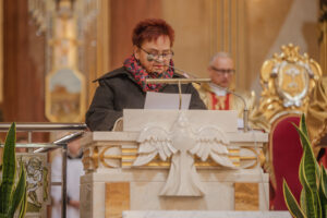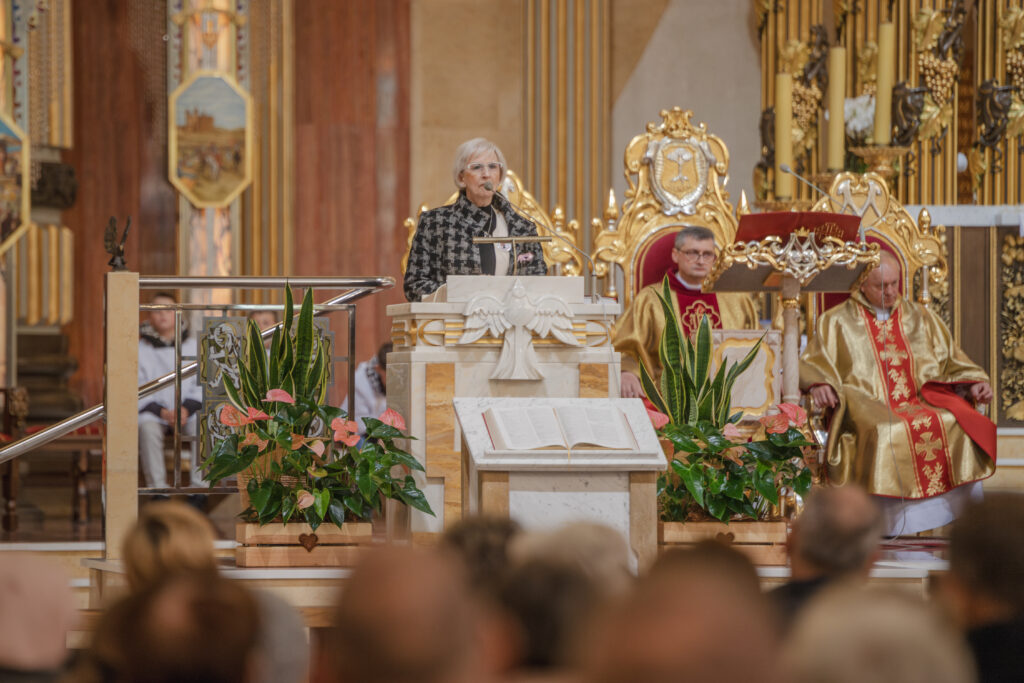 Mszy św. w intencji osób chorych na raka piersi, ich rodzin oraz zmarłych z powodu tej choroby przewodniczył kustosz sanktuarium ks. Sławomir Homoncik MIC, który, nawiązując do trudności, przez które przechodzą kobiety z diagnozą raka piersi, mówił: „Jesteśmy mali wobec wielkiego Boga, dlatego nadzieja nas nie zawodzi”.