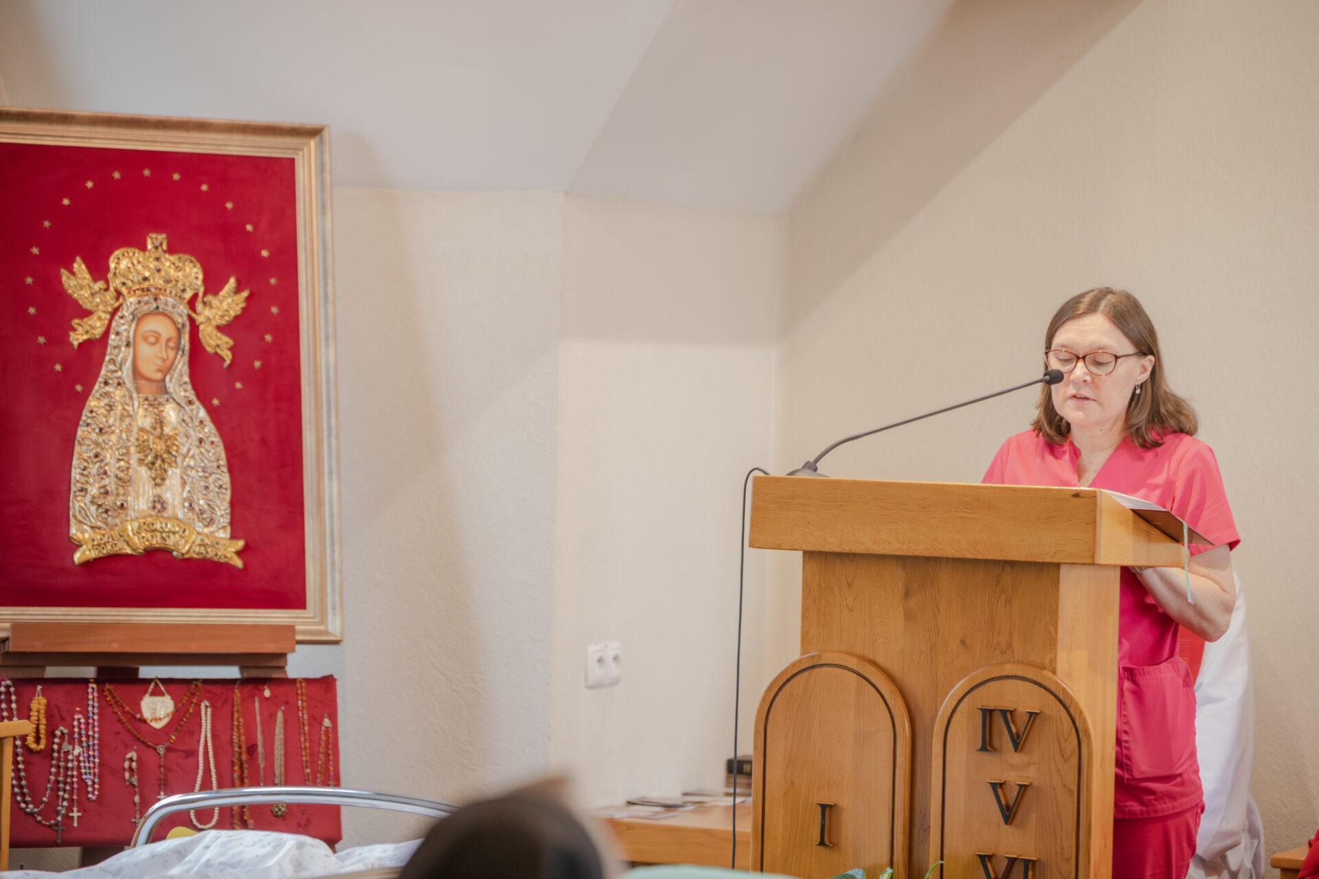 17 października o godz. 11.00, w kaplicy hospicyjnej, odbyła się Msza św., w której uczestniczyły pielęgniarki, opiekunowie medyczni, wolontariusze hospicyjni, pracownicy administracji oraz pacjenci licheńskiej placówki. Wśród obecnych była także Siostra dr Elżbieta Woźna USJK, lekarz ginekolog i endokrynolog, specjalistka naprotechnologii. Siostra Elżbieta udziela konsultacji w działającym na terenie sanktuarium Ośrodku Wsparcia Płodności „NaProTechnologia”.