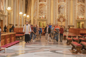 W tym symbolicznym modlitewnym geście, kiedy paciorki różańca spoczywają w dłoniach przedstawicieli rodzin zgromadzonych przed obrazem Matki Bożej Licheńskiej. biorą udział małżonkowie, dziadkowie, dzieci oraz młodzież – wszyscy jednocząc się duchowo z wiernymi obecnymi w bazylice, jak również z tymi, którzy łączą się przez transmisję internetową. Jest to zarówno moment pełen duchowych poruszeń, jak i świadectwo wiary i głębokiej pobożności polskich rodzin – żywego i autentycznego Kościoła, miłującego Chrystusa i Jego Matkę.