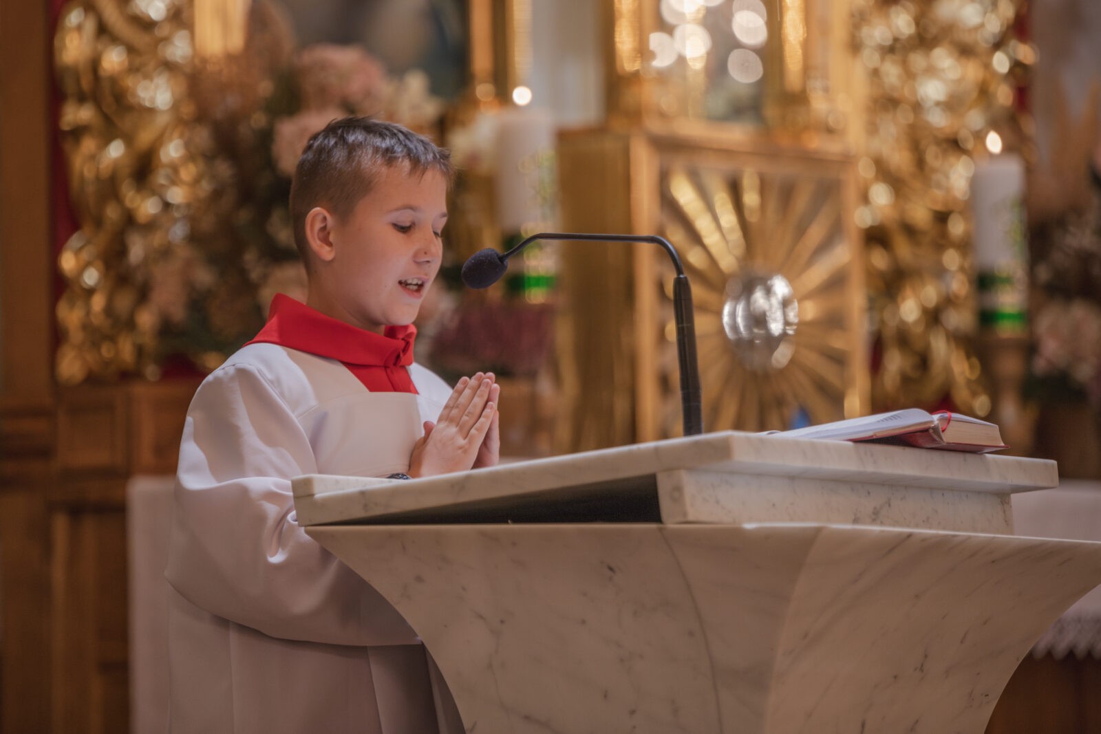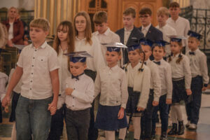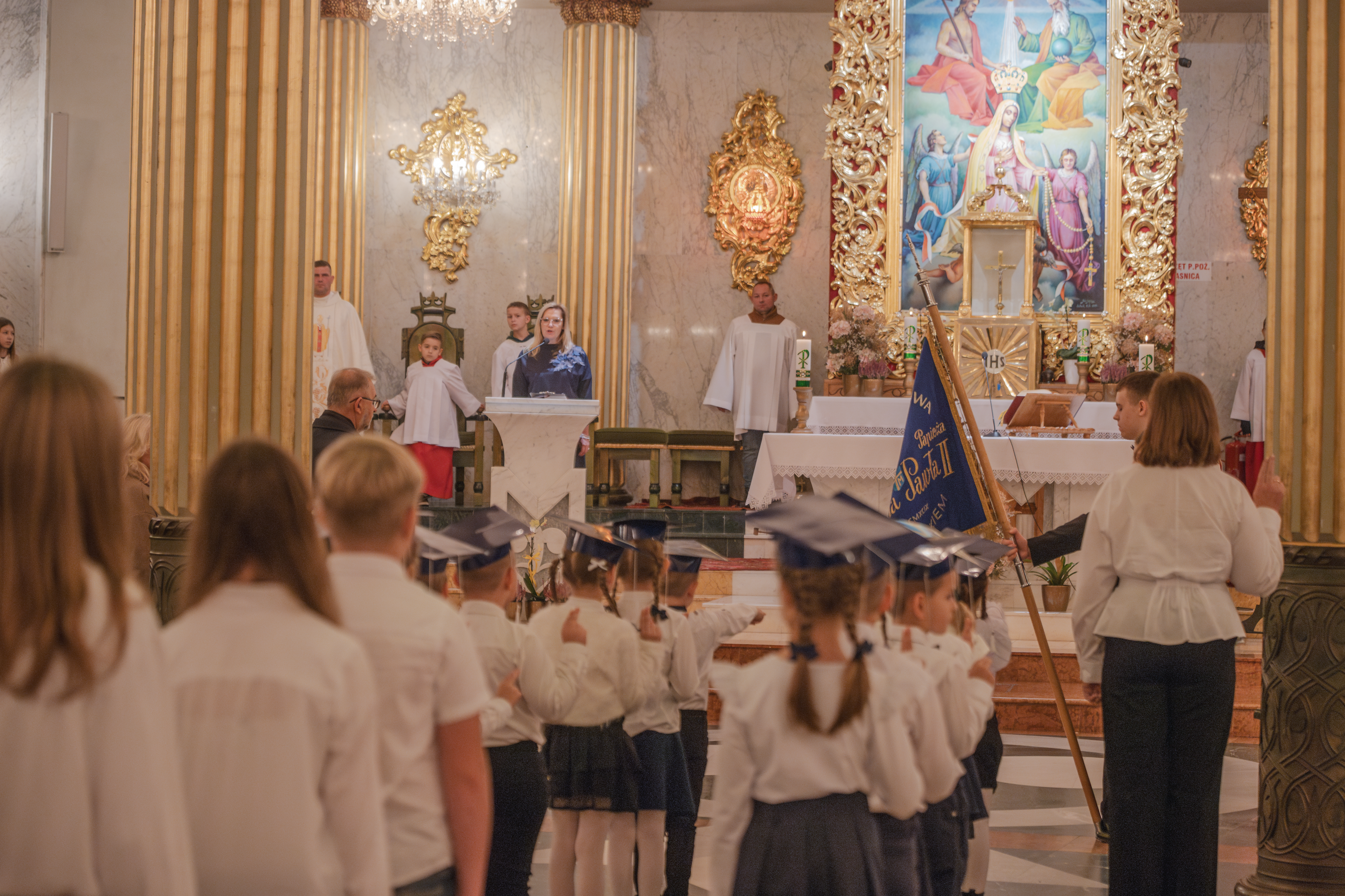Podczas 30. Pieszej Pielgrzymki Szkoły Podstawowej im. Papieża Jana Pawła II z Wysokiego 16 pierwszoklasistów złożyło ślubowanie w licheńskiej bazylice.