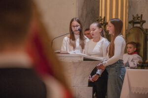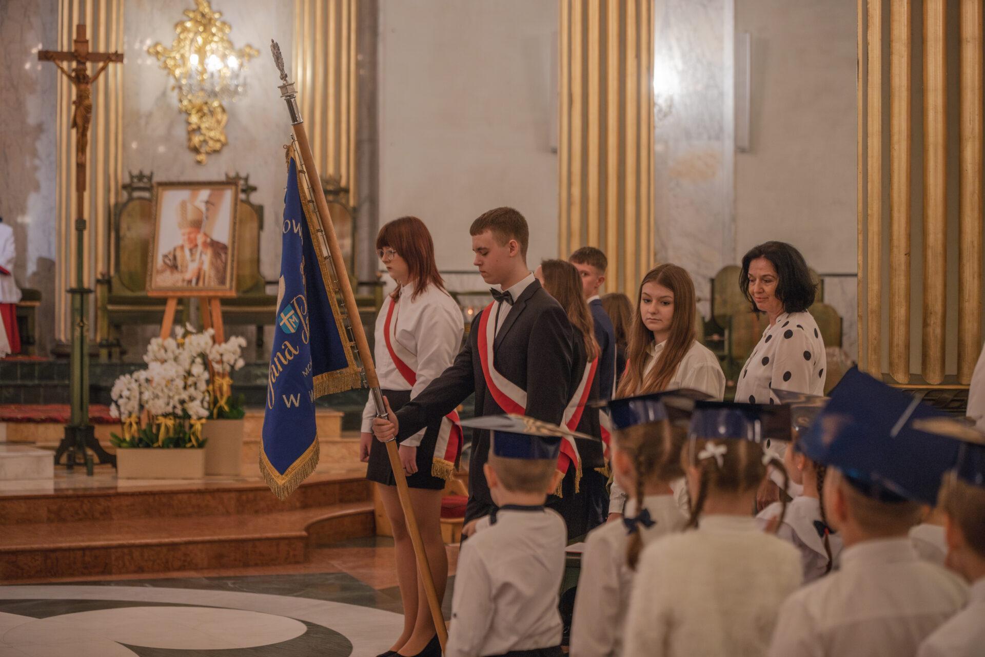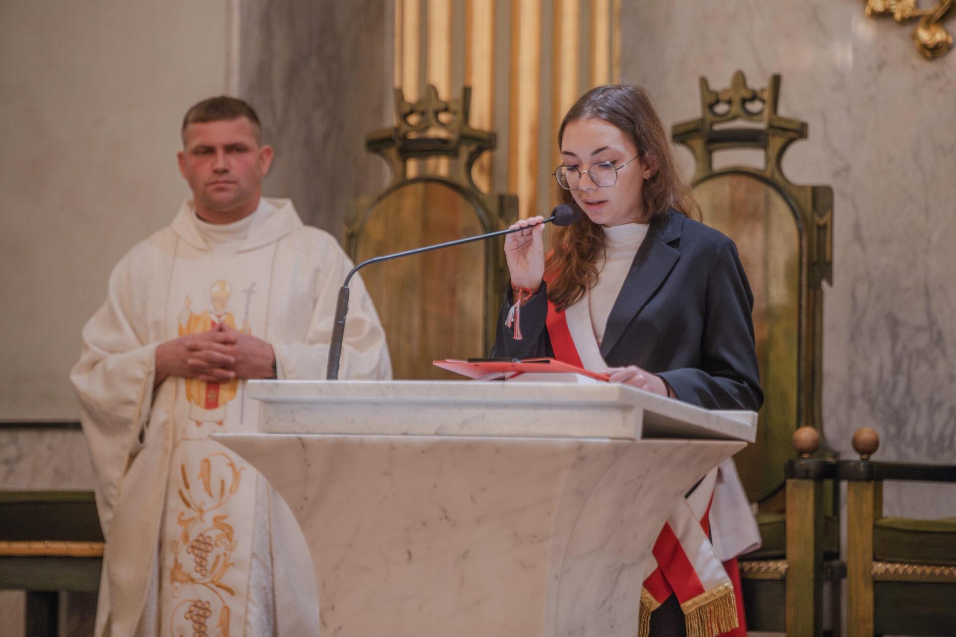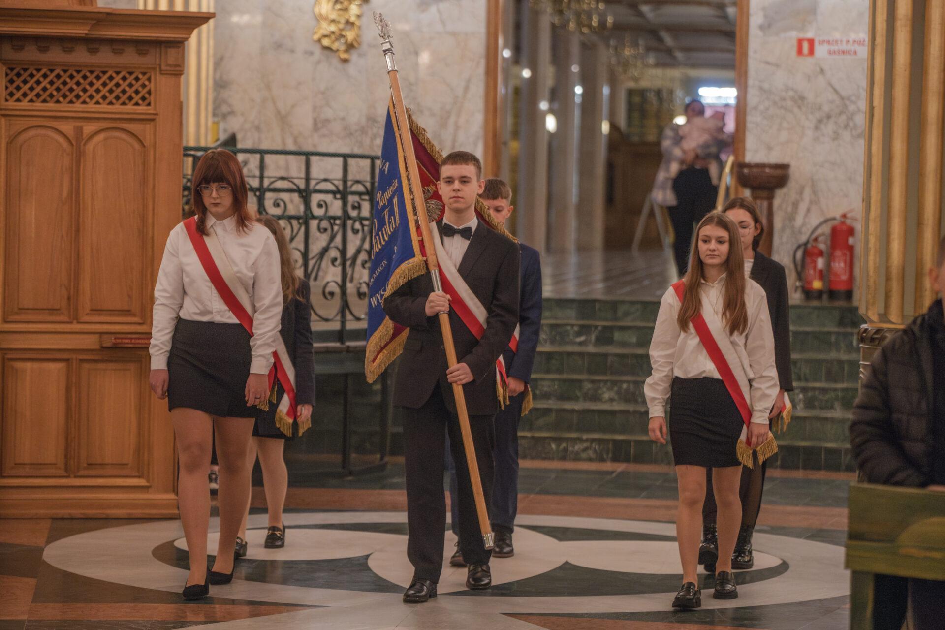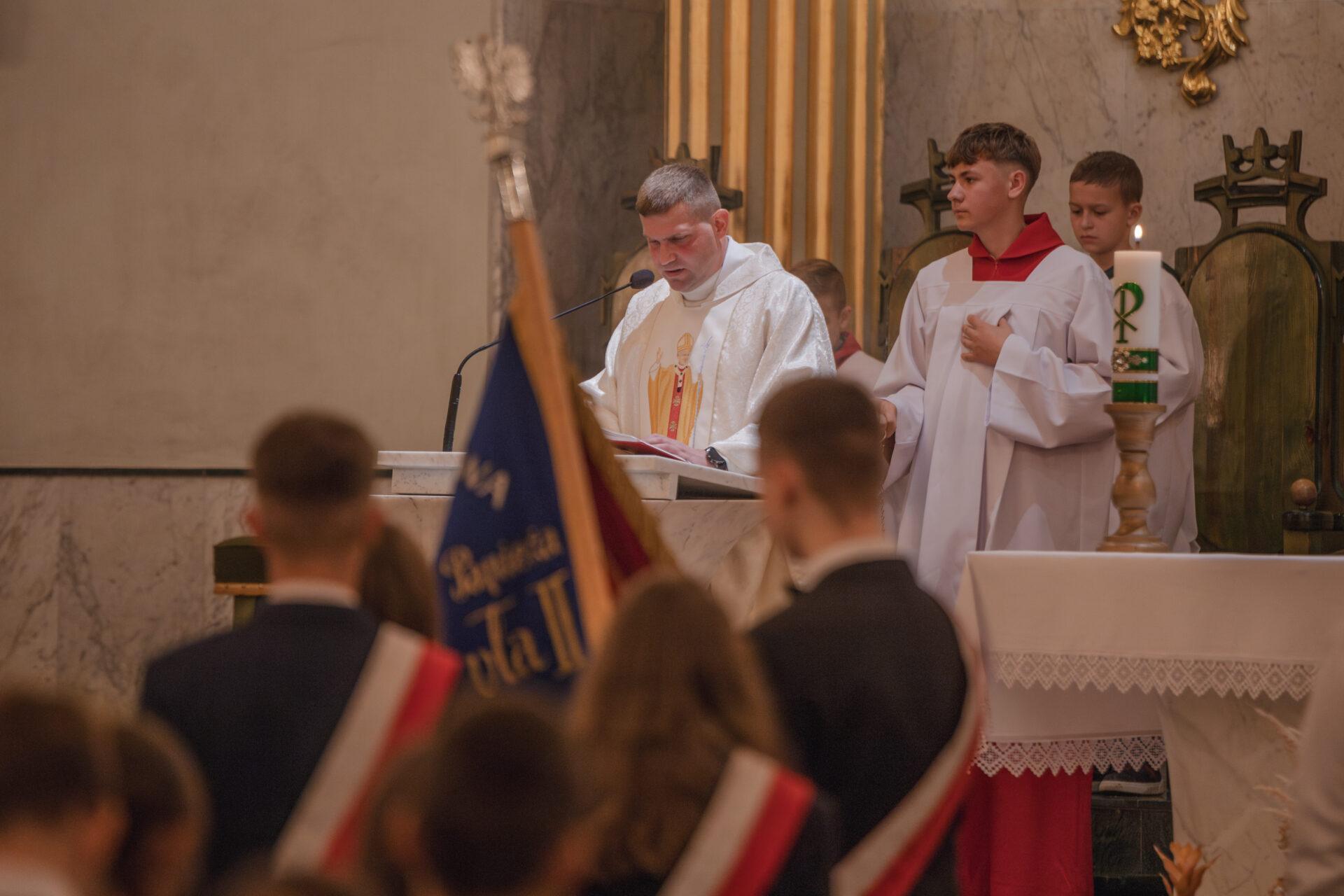 „Jestem dumny z tego, że jestem w sztandarze. Jest to dla mnie duże wyróżnienie i zaszczyt, że mogę reprezentować naszą szkołę. Jestem wdzięczny moim rodzicom, że mogę się uczyć i być w tym miejscu. Naszym patronem jest Jan Paweł II. Był wspaniałym człowiekiem. Każdy powinien czerpać inspirację z jego życia i nauczania” – mówił uczeń szkoły.
