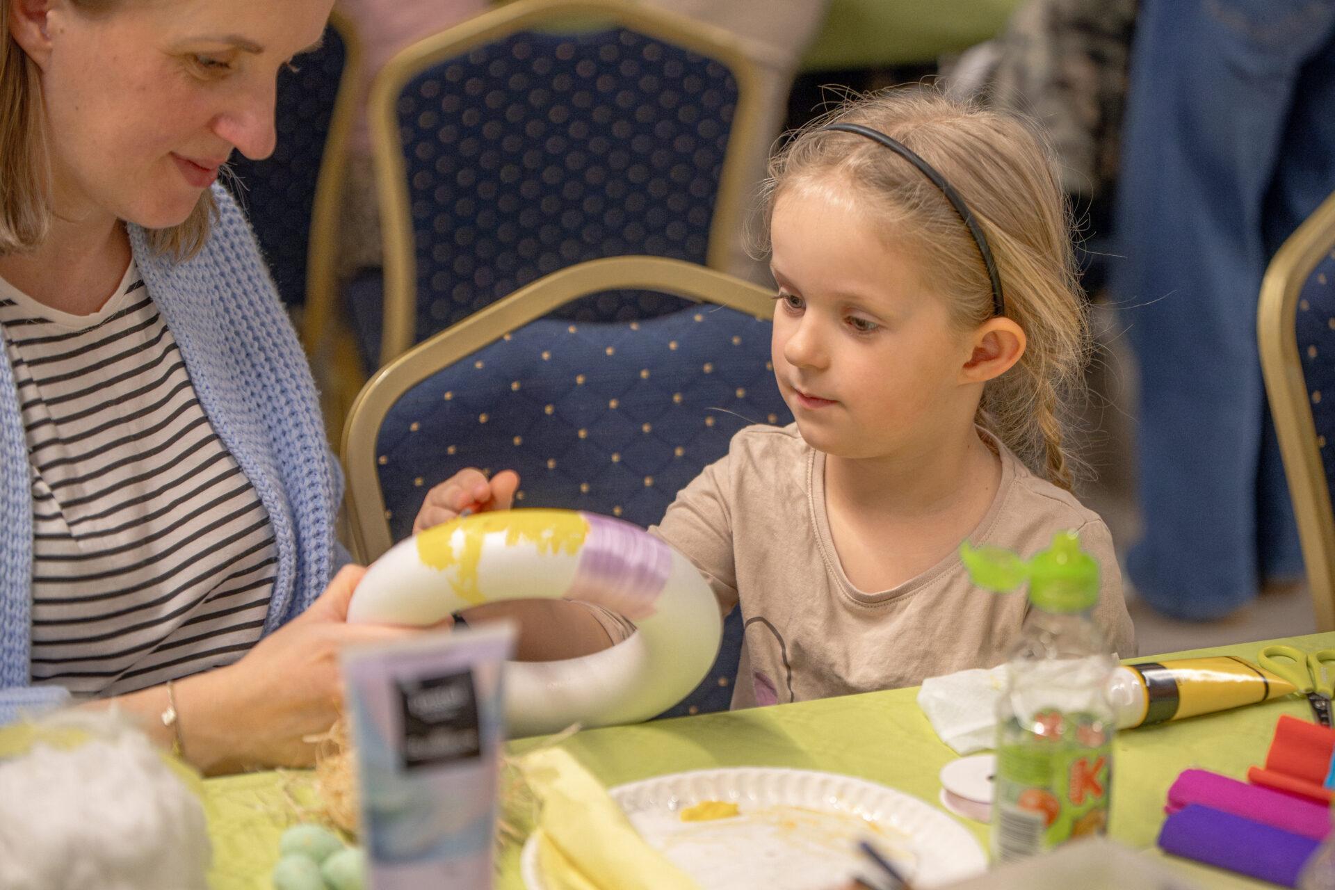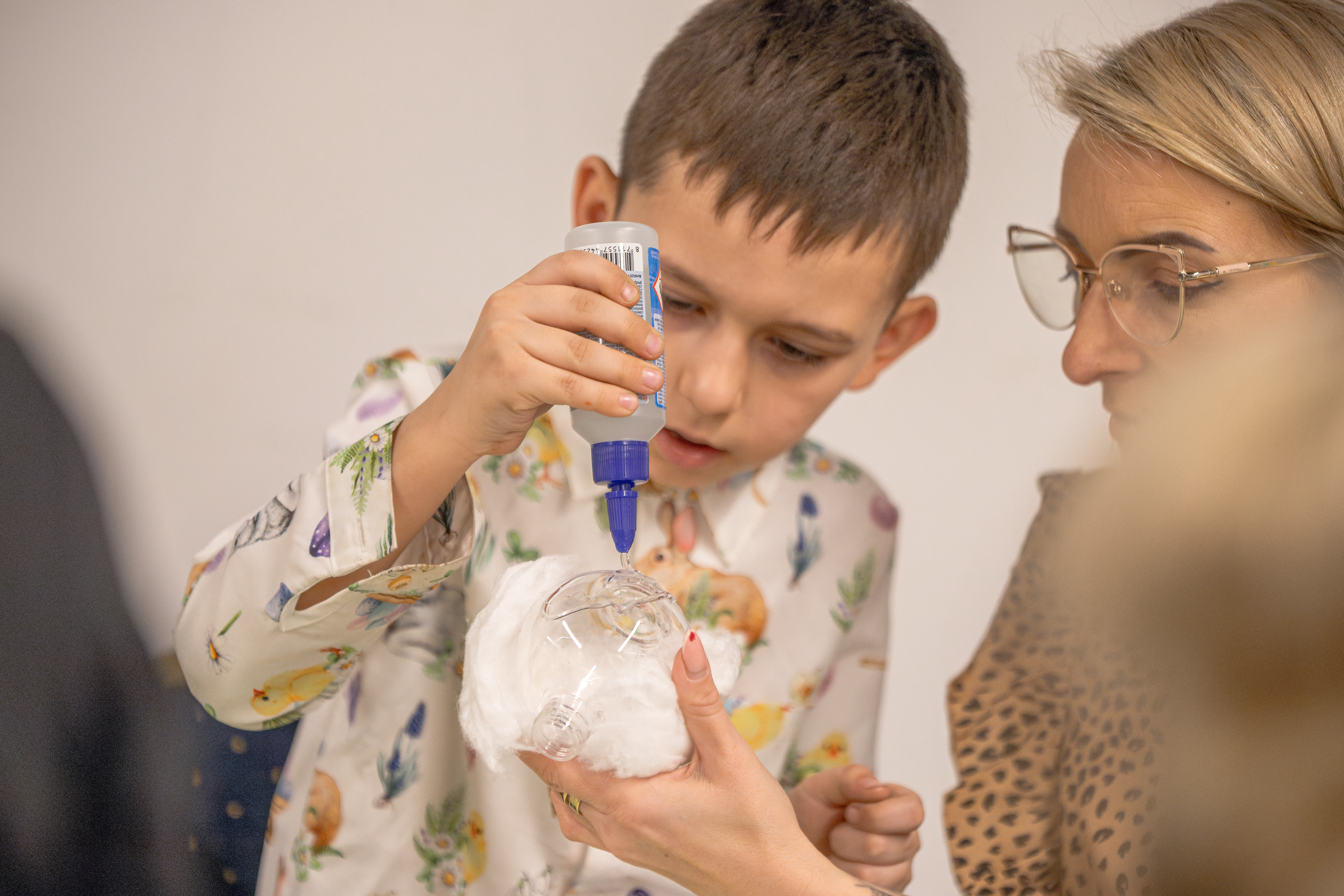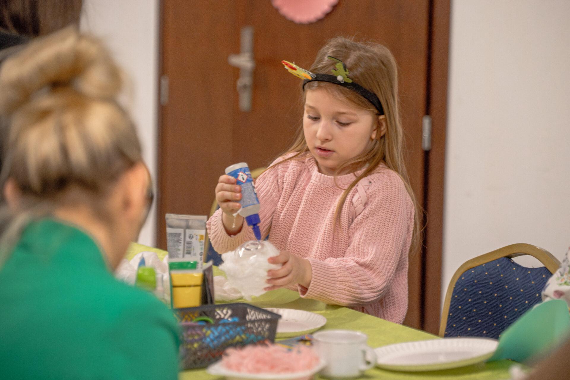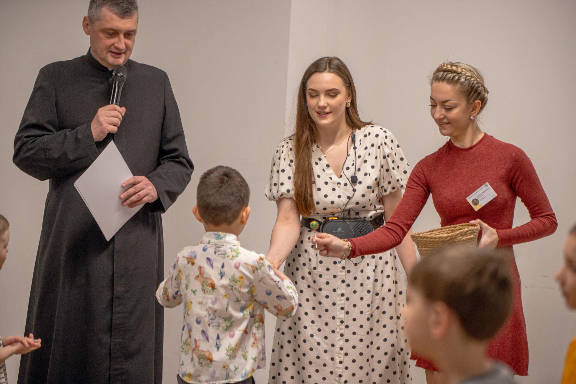 Program warsztatów został zaplanowany tak, aby połączyć treści edukacyjne z zabawą oraz twórczą aktywnością. Spotkanie rozpoczęło się od krótkiej katechezy, która w przystępny sposób przybliżyła dzieciom znaczenie Wielkiego Tygodnia. Najmłodsi z zainteresowaniem słuchali o wydarzeniach poprzedzających Zmartwychwstanie Jezusa, a także poznawali symbolikę produktów znajdujących się w wielkanocnym koszyczku.