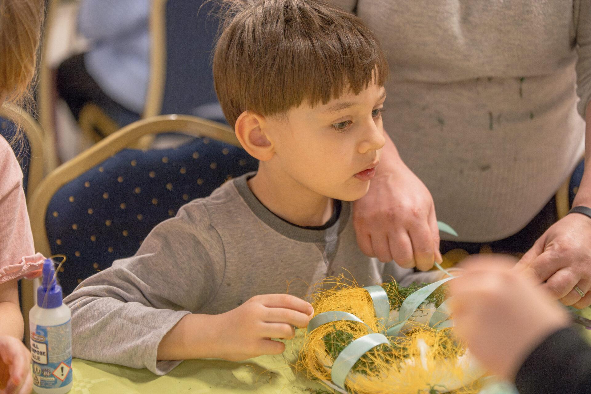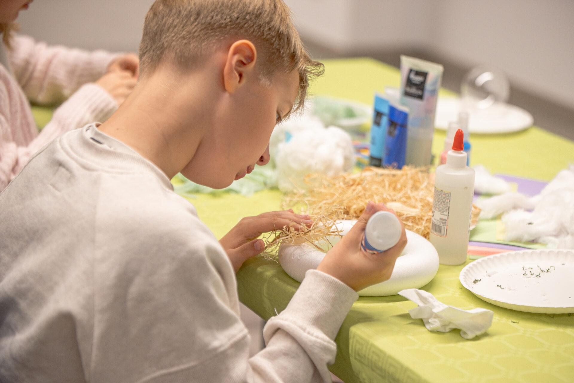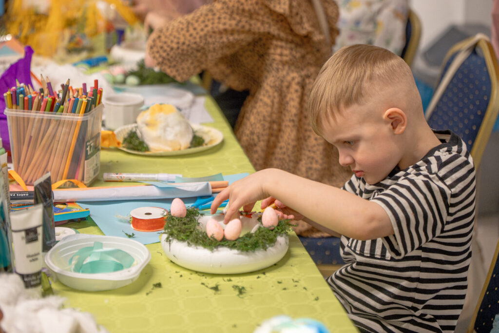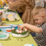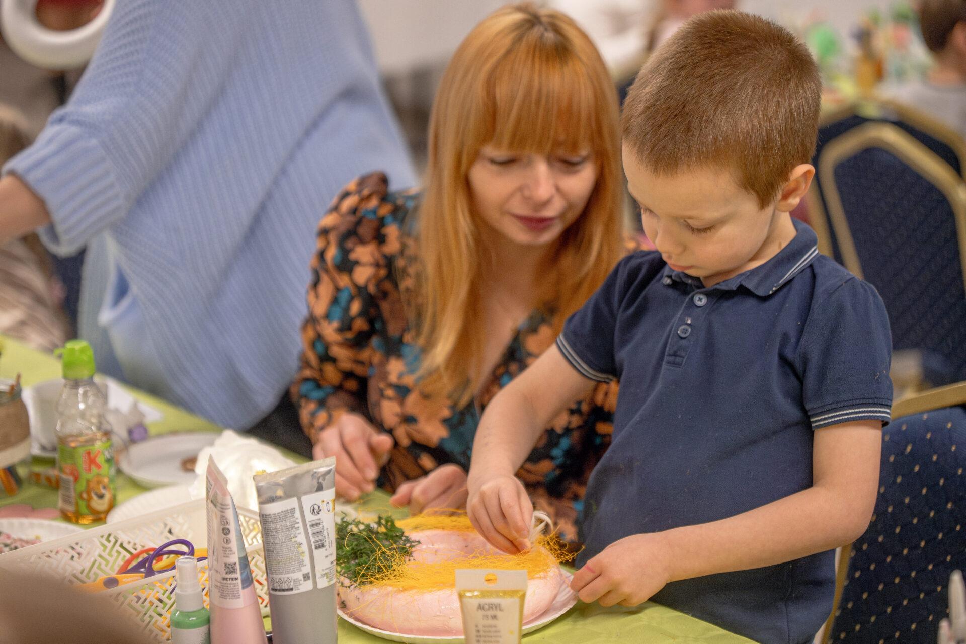 Program warsztatów został zaplanowany tak, aby połączyć treści edukacyjne z zabawą oraz twórczą aktywnością. Spotkanie rozpoczęło się od krótkiej katechezy, która w przystępny sposób przybliżyła dzieciom znaczenie Wielkiego Tygodnia. Najmłodsi z zainteresowaniem słuchali o wydarzeniach poprzedzających Zmartwychwstanie Jezusa, a także poznawali symbolikę produktów znajdujących się w wielkanocnym koszyczku.