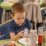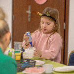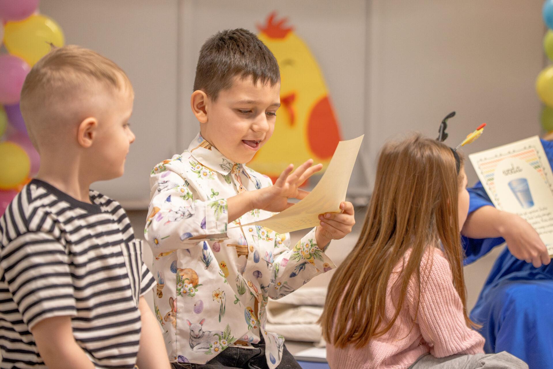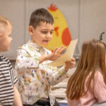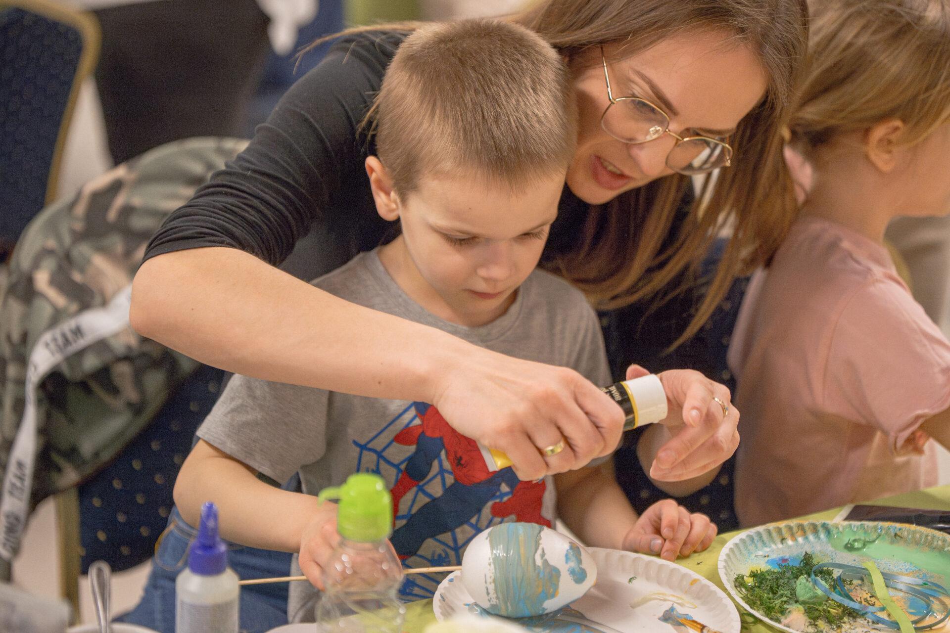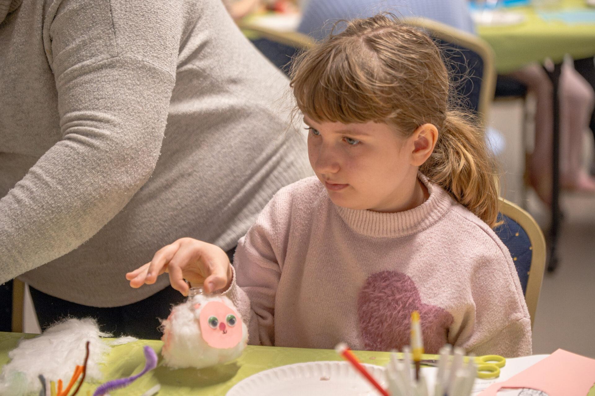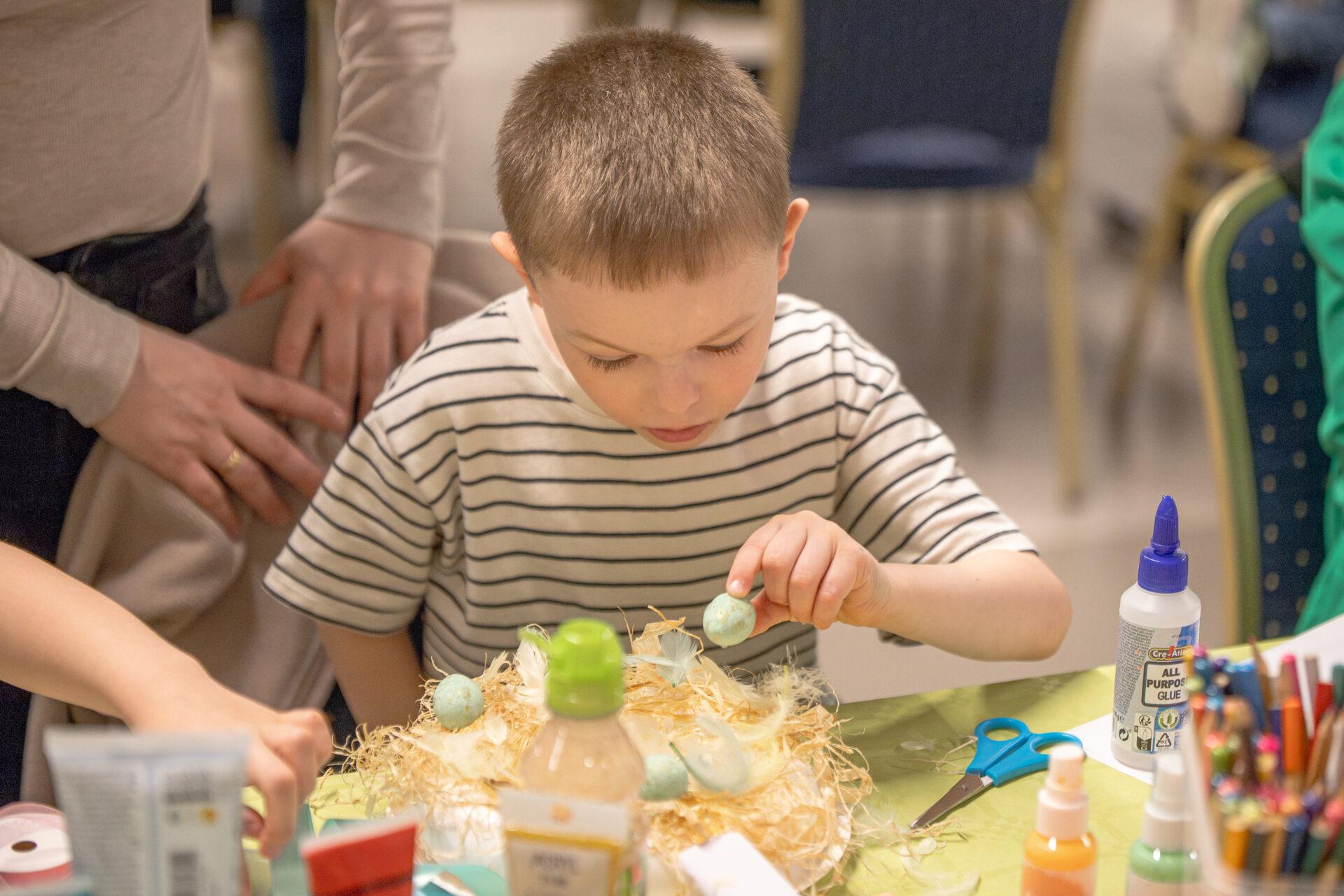Program warsztatów został zaplanowany tak, aby połączyć treści edukacyjne z zabawą oraz twórczą aktywnością. Spotkanie rozpoczęło się od krótkiej katechezy, która w przystępny sposób przybliżyła dzieciom znaczenie Wielkiego Tygodnia. Najmłodsi z zainteresowaniem słuchali o wydarzeniach poprzedzających Zmartwychwstanie Jezusa, a także poznawali symbolikę produktów znajdujących się w wielkanocnym koszyczku.