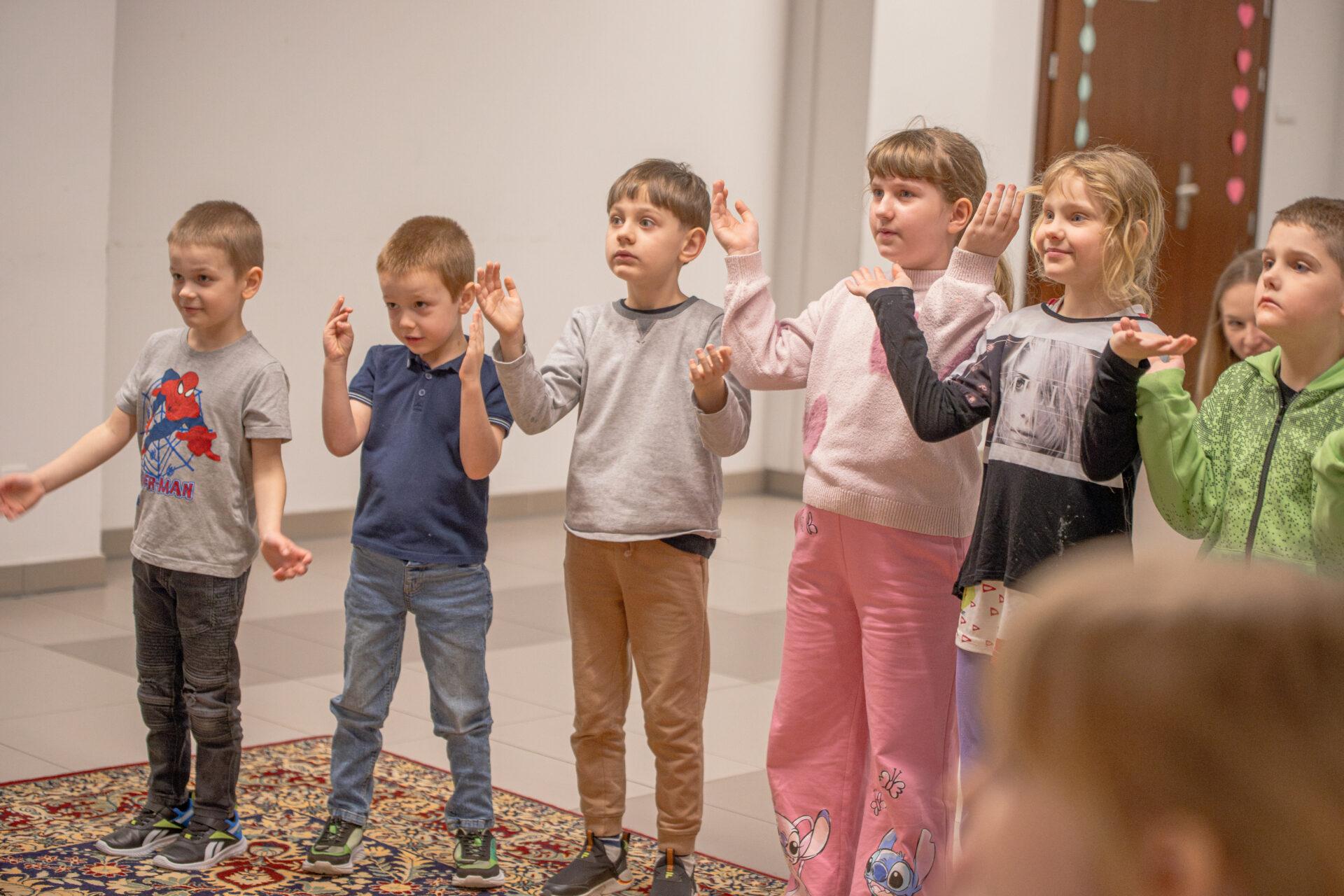 Nie zabrakło również elementu muzyczno-ruchowego. Dzieci uczyły się prostych układów ruchowych do piosenki chrześcijańskiej, co pozwoliło wyrazić swoją wiarę poprzez śpiew i gest.