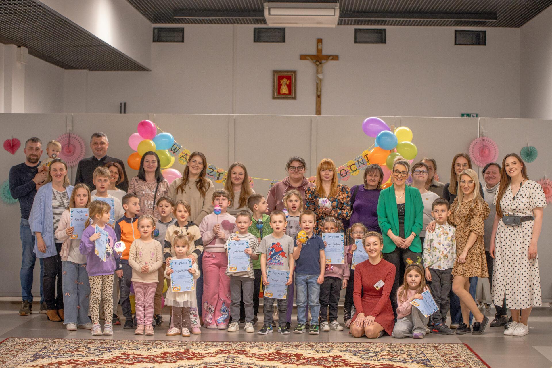 Na zakończenie spotkania wykonano wspólną pamiątkową fotografię, która uwieczniła radosne chwile spędzone razem. Każde dziecko otrzymało także dyplom uczestnictwa, będący miłym upominkiem i przypomnieniem tego dnia. Ksiądz Sławomir udzielił wszystkim uczestnikom błogosławieństwa, powierzając dzieci i ich rodziny opiece Matki Bożej na czas przygotowań i przeżywania Świąt Wielkanocnych.