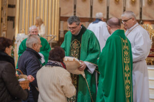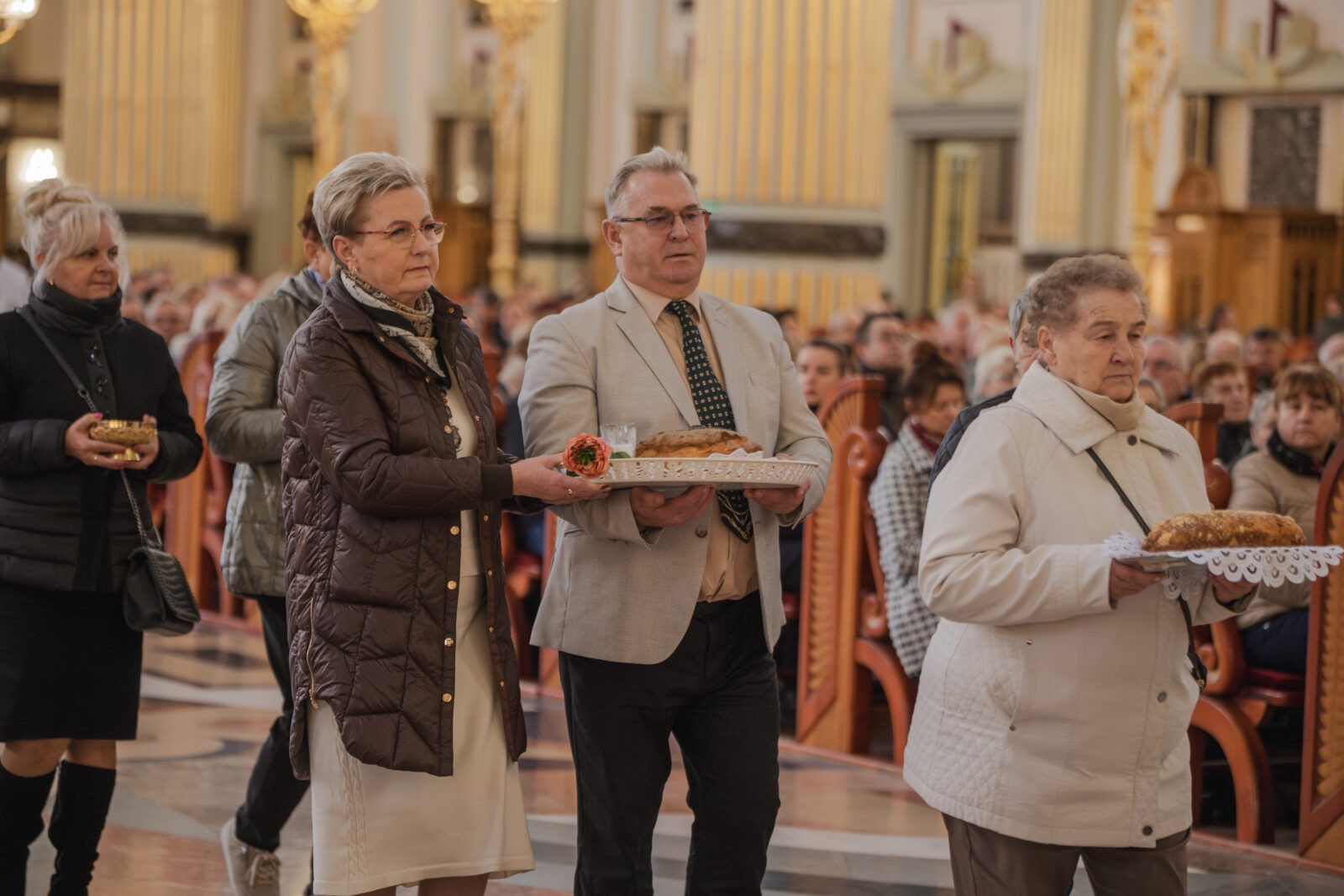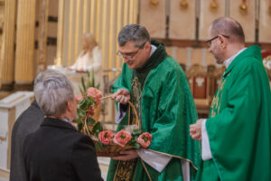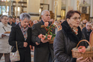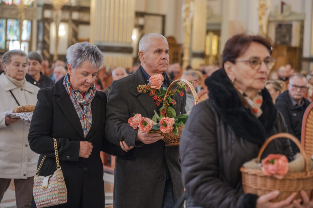 Podczas procesji z darami ołtarza, które ponieśli seniorzy, każdy gest miał swoje znaczenie. Świeca symbolizowała wdzięczność za życie i wiarę, które rozświetlają codzienność młodszych pokoleń. Chleb, sól, winogrona i drożdżowy placek przypominały o codziennym trudzie, dobroci i gościnności. Różaniec był znakiem modlitwy i ufności, którą seniorzy otaczają swoje rodziny i cały Kościół. Słoje przetworów świadczyły o gospodarności i trosce o dobro wspólne, a cebulki kwiatów symbolizowały życie odradzające się z Bożej łaski.
