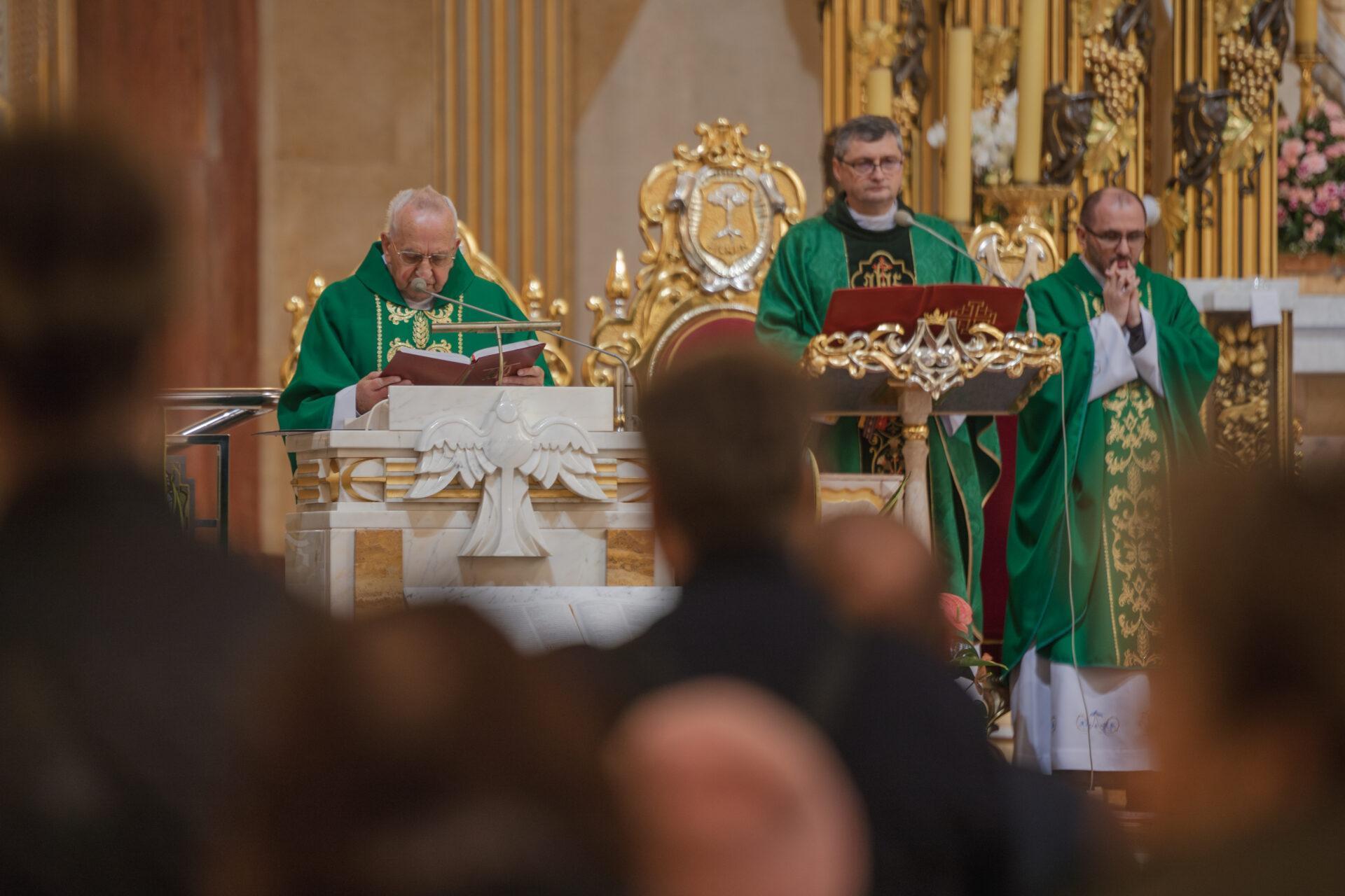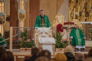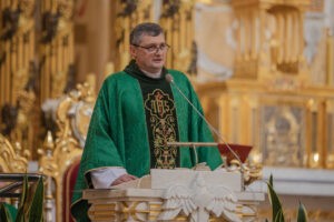 Podczas Mszy Świętej o godz. 12.00 homilię wygłosił ks. Sławomir Homoncik MIC, kustosz licheńskiego sanktuarium. W swoim słowie mówił o sile modlitwy i o wytrwałości w wierze. – „W każdym z nas toczy się walka między orłem a wężem” – przypomniał. – „Orzeł symbolizuje wszystko, co dobre i piękne, wąż zaś słabość i zniechęcenie. Wygra ten, którego częściej karmimy”. Ksiądz kustosz z wdzięcznością dodał również słowa uznania dla seniorów: