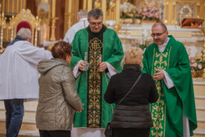 W liturgię włączyły się koła i stowarzyszenia, które od lat współtworzą duchową i społeczną tożsamość regionu: Koło Różańcowe z Lichenia, Koło Gospodyń Wiejskich z Lichenia, KGW Sławoszewek, Koło Emerytów i Rencistów z Sompolna, KGW z Półwioska Nowego oraz Klub Seniora „Leśne Echo” z Kazimierza Biskupiego. Ich obecność była nie tylko symbolem wspólnoty, lecz również pięknym świadectwem żywej wiary przekazywanej z pokolenia na pokolenie. Posługę muzyczną podczas Mszy św. pełnił, nadając uroczystości szczególnie podniosły ton, chór bazyliki licheńskiej Stabat Mater pod dyrekcją pana Jacka Hyżnego, organisty licheńskiego sanktuarium.