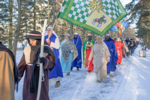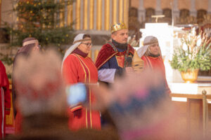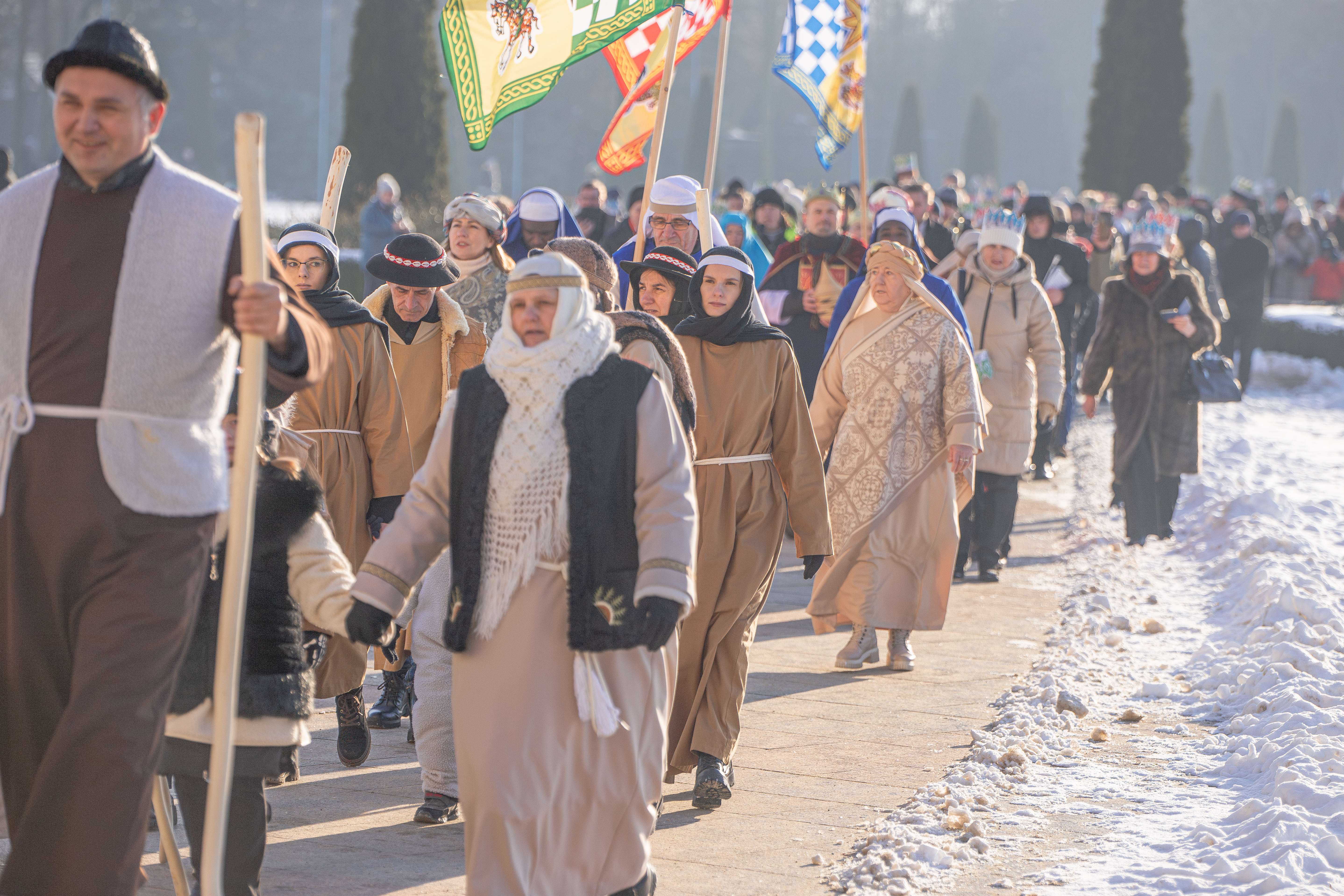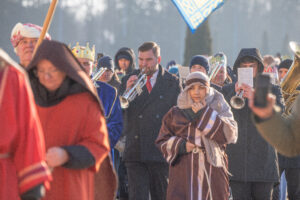 Po liturgii alejkami licheńskiego sanktuarium przeszedł Orszak Trzech Króli, w który zaangażowali się przyjaciele sanktuarium oraz lokalna wspólnota parafian i mieszkańców. Orszak prowadzili strażacy z OSP Licheń Stary, a posługę muzyczną pełnił kwintet dęty sanktuarium, nadając wydarzeniu podniosły, radosny charakter. Wspólne kolędowanie i obecność rodzin z dziećmi tworzyły atmosferę żywej, radosnej wiary.