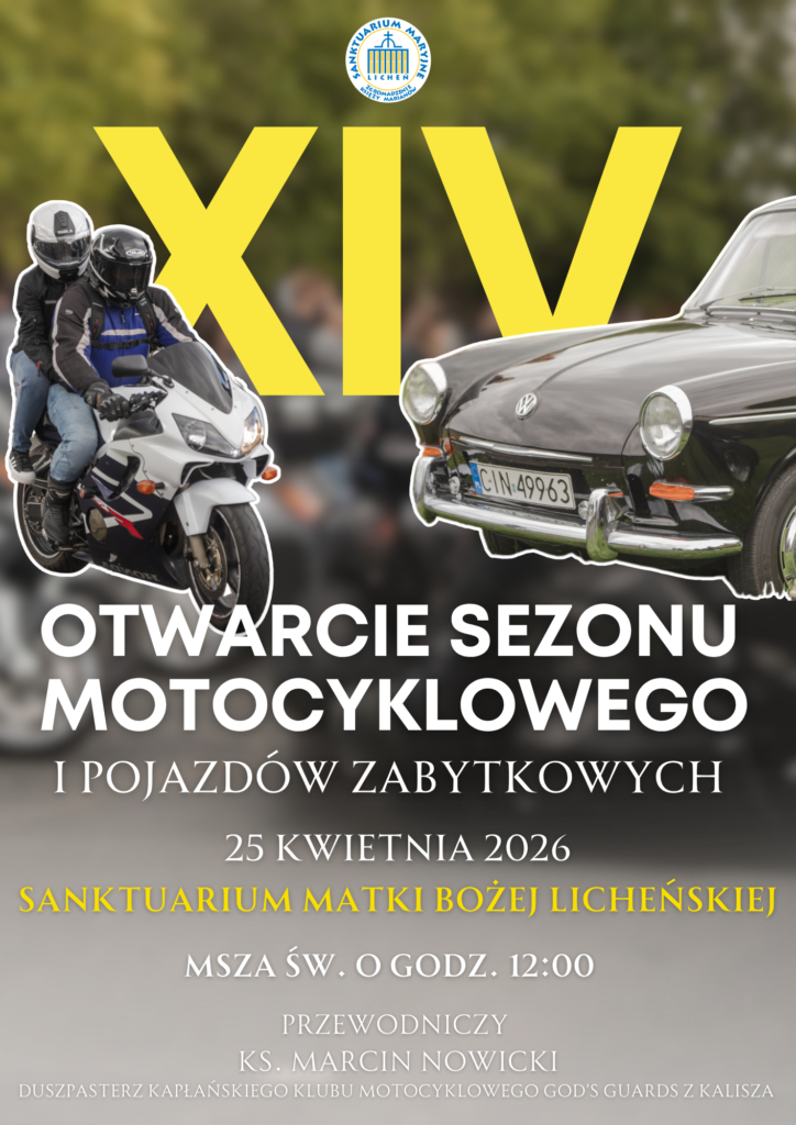 Otwarcie sezonu motocyklowego i pojazdów zabytkowych to już długoletnia tradycja w sanktuarium Matki Bożej Licheńskiej. XIV spotkanie pasjonatów motorów oraz pojazdów zabytkowych odbędzie się 25 kwietnia. Oficjalne rozpoczęcie o godz. 10.00 na parkingu przy ul. Toruńskiej (tzw. lotnisko).