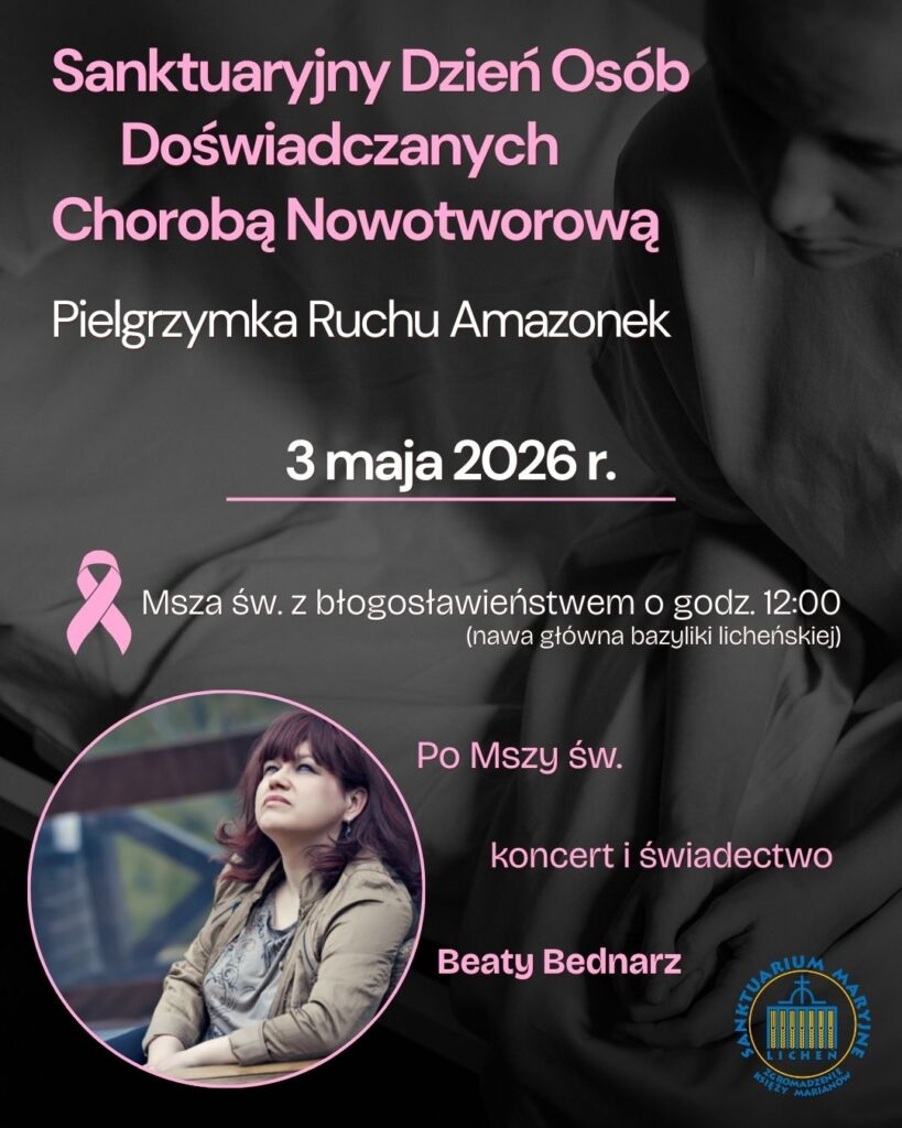 Święty Paweł w Liście do Tesaloniczan zachęca: „W każdym położeniu dziękujcie, taka jest bowiem wola Boża w Jezusie Chrystusie względem was” (5,17). W tym właśnie duchu 3 maja br. podczas Mszy św. o godz. 12.00 pragniemy przeżywać kolejną już Pielgrzymkę Ruchu Amazonek połączoną z Sanktuaryjnym Dniem Osób Doświadczanych Chorobą Nowotworową. Przeżywana tego dnia pełna nadziei i radości V Niedziela Wielkanocna oraz zwrócenie się w stronę Tej, którą od wieków w naszej Ojczyźnie czcimy jako Królową Polski, z pewnością stworzą odpowiedni klimat wdzięczności i uwielbienia Jezusa i Jego Matki Maryi. Będziemy dziękować, ale też prosić zarówno w intencji tych, którzy wygrali walkę z rakiem, jak też w intencji tych, którzy tę walkę jeszcze toczą, oraz wszystkich opiekujących się chorymi.