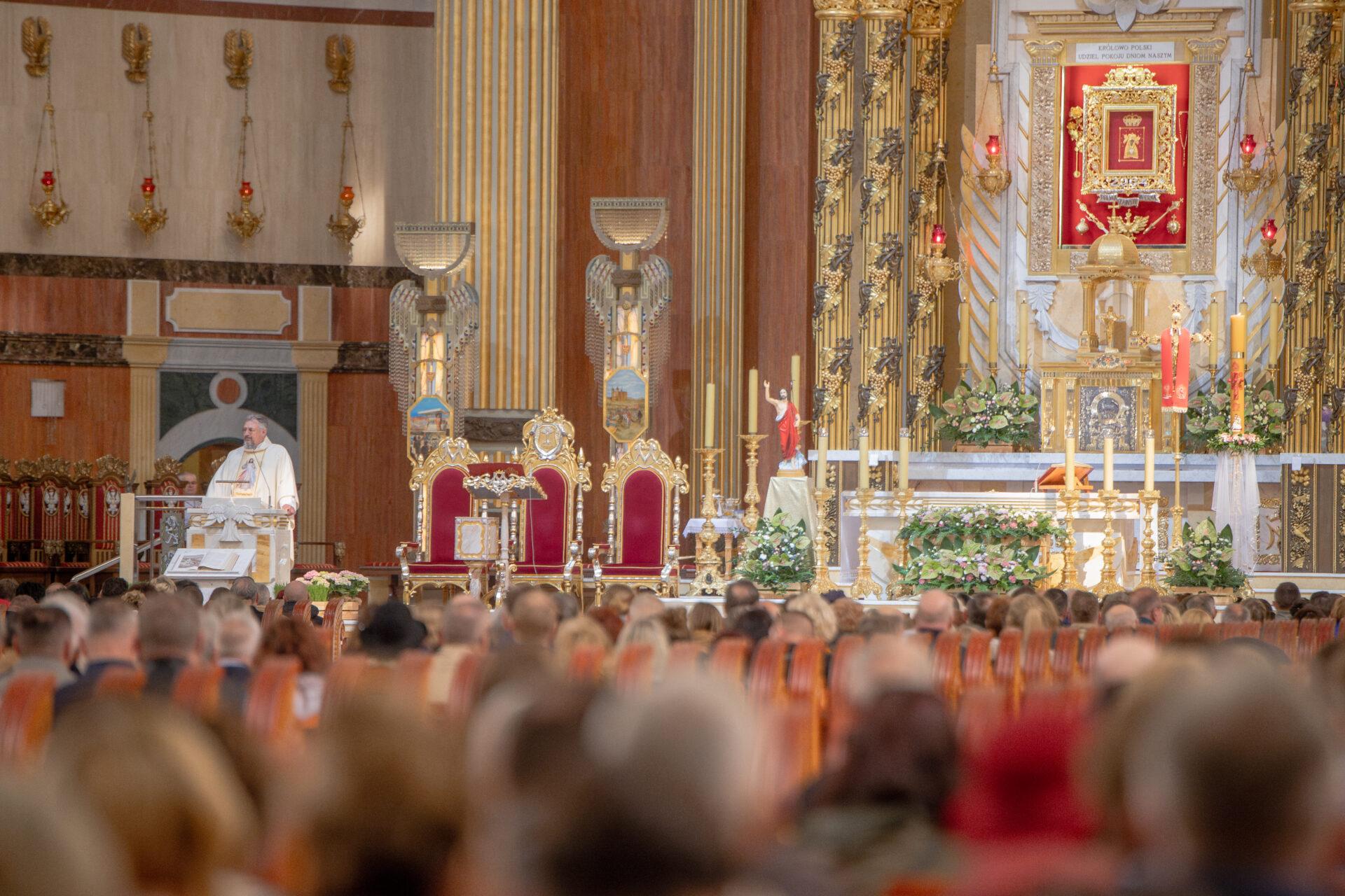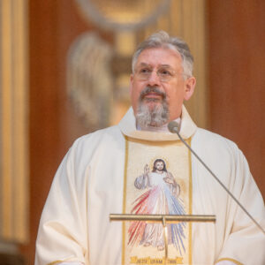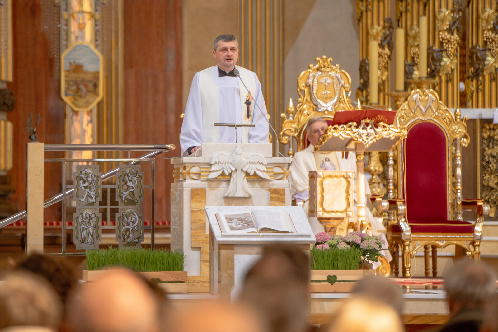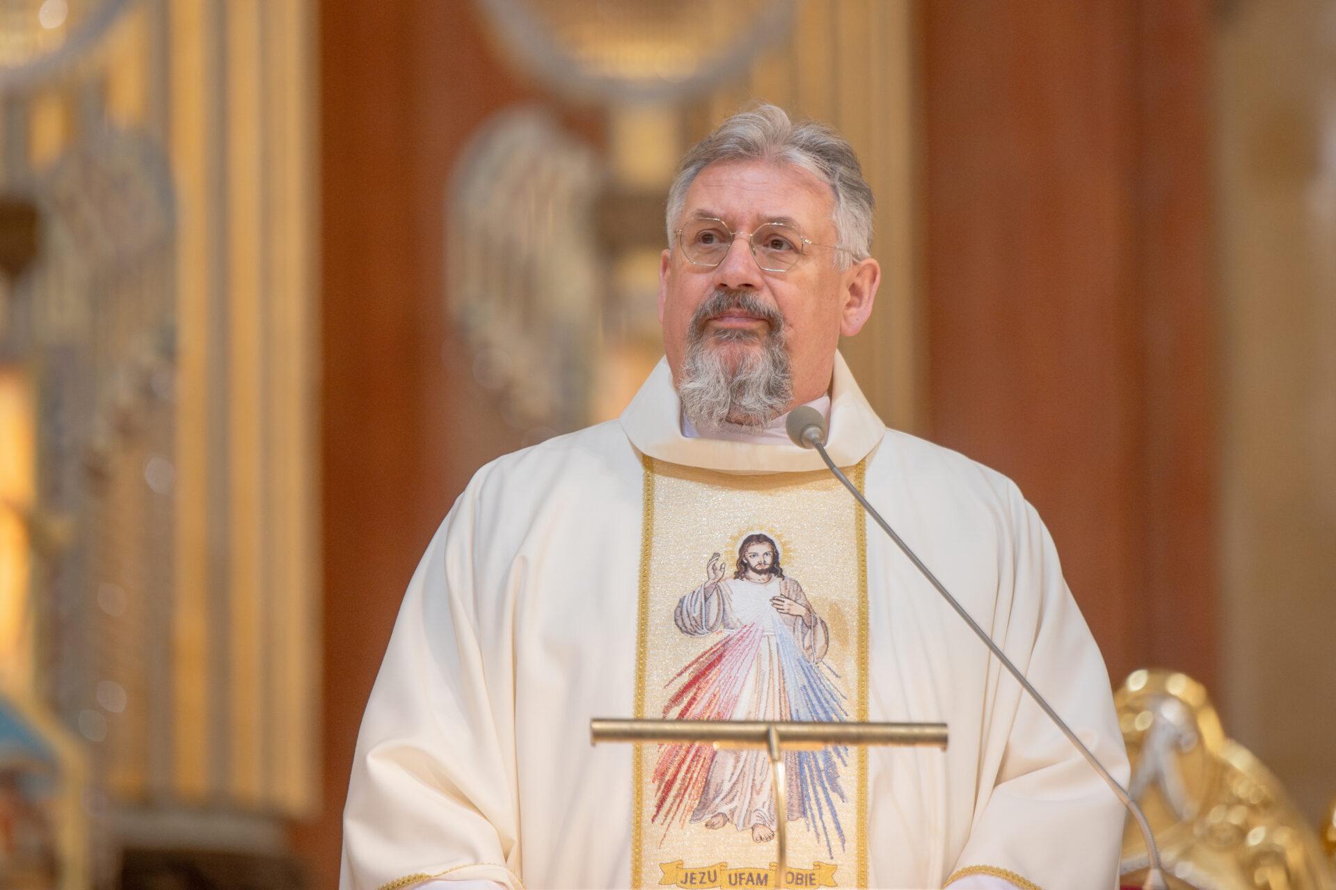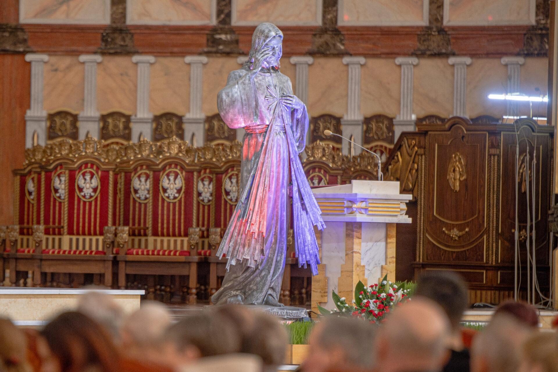 Liturgii przewodniczył ks. Piotr Kieniewicz MIC, bioetyk, sekretarz Polskiej Prowincji Zgromadzenia Księży Marianów oraz współzałożyciel Licheńskiego Ośrodka Wsparcia Płodności. W wygłoszonej homilii kaznodzieja wskazał, że choć święto Miłosierdzia Bożego zostało formalnie ustanowione przez św. Jana Pawła II, to jego fundamenty tkwią głęboko w biblijnym orędziu o zbawieniu. Duchowny podkreślił, że miłosierdzie nie jest jedynie zbiorem dobrych uczynków czy społeczną filantropią, ale wypływa z samej istoty Boga, który kocha człowieka nie za jego zasługi, lecz dlatego, że człowiek tej miłości bezgranicznie potrzebuje.