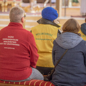 Wymownym dopełnieniem wspólnej modlitwy było aktywne zaangażowanie wolontariuszy, którzy włączyli się w liturgię słowa, a po zakończeniu Mszy świętej dzielili się z wiernymi informacjami o działalności lokalnych ośrodków miłosierdzia. Dzięki broszurom informacyjnym oraz bezpośrednim rozmowom, uczestnicy uroczystości mogli przekonać się, jak orędzie pokoju i nadziei przekłada się na realne wsparcie dla chorych, rodzin oraz osób zmagających się z trudnościami życiowymi. Dla osób bezpośrednio związanych z Ośrodkiem Wsparcia Płodności dzień ten miał także charakter wspólnotowy – po Eucharystii spotkały się one na wspólnej modlitwie w kaplicy św. Stanisława Papczyńskiego, powierzając Patronowi życia, jak nazywany jest Założyciel marianów, trud starań do dar potomstwa.