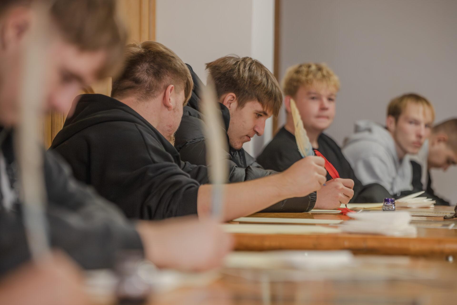 We wtorek, 7 października, 30-osobowa grupa uczniów z klas 2 i 3 Zespołu Szkół im. Mikołaja Kopernika w Koninie wzięła udział w lekcji muzealnej poświęconej Janowi Kochanowskiemu. To była nie tylko okazja do poznania jednego z najważniejszych twórców polskiego renesansu, ale też… do nauki kaligrafii z użyciem prawdziwego pióra i atramentu. Uczniowie mieli okazję zwiedzić muzeum i na własne oczy zobaczyć oryginalne eksponaty. To sprawia, że każde takie spotkanie z historią staje się jeszcze bardziej autentyczne i wyjątkowe.