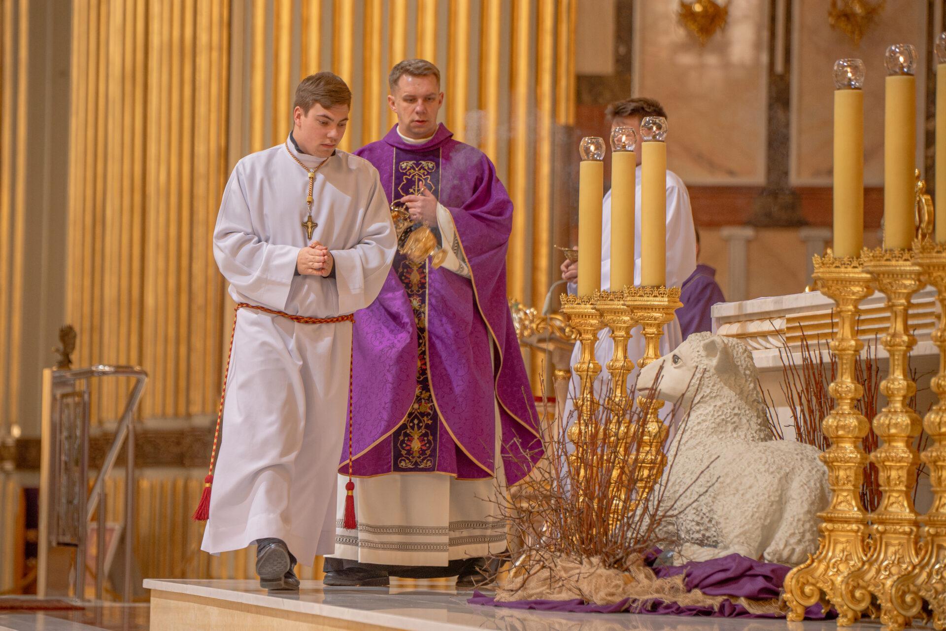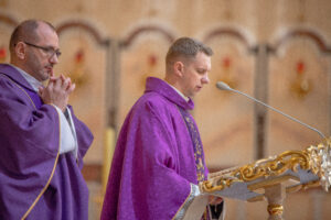 Rozważając tajemnicę Wielkiego Postu, ks. Adam Stankiewicz przywołał także obraz Golgoty. W chwili cierpienia i śmierci Jezusa wielu uczniów ogarnął lęk i zwątpienie, jednak pod krzyżem pozostała Maryja. – „Zobaczcie, że Maryja, kiedy stoi pod krzyżem Jezusa w