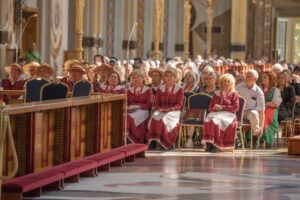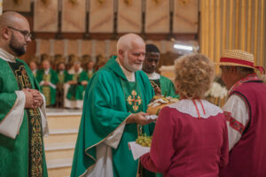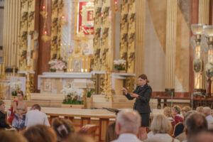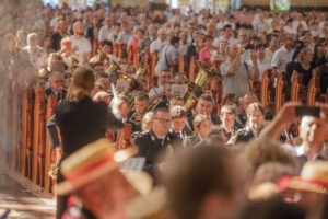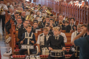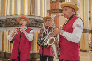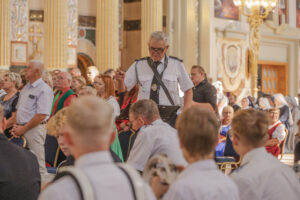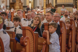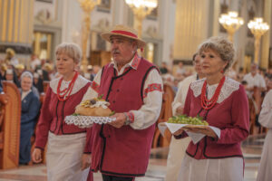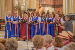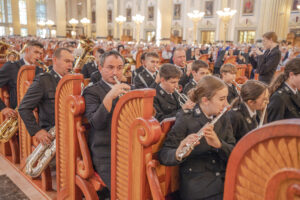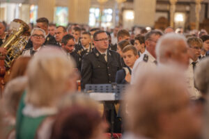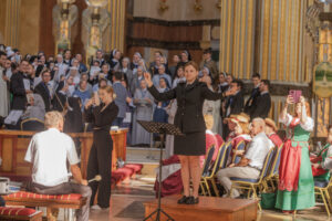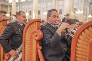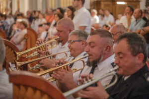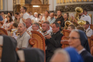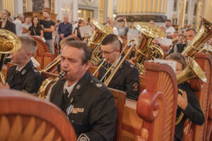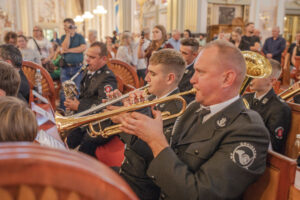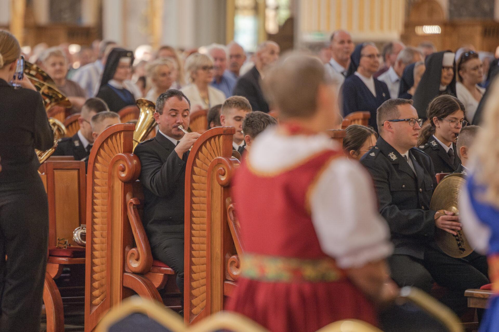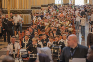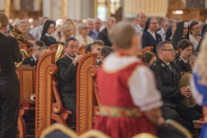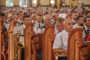 Licheńska bazylika w niedzielę 21 września rozbrzmiewała muzyką i śpiewem z okazji XV Ogólnopolskiego Zlotu Chórów i Orkiestr. W tym roku Licheń gościł: Chór Gminnego Centrum Kultury z Lubochni, Zespół Sceniczno-Wokalny ,,Ognista Drużyna” z Czerminie, Zespół Ludowy „Jarzębiny” ze Świeszyna, Zespół Śpiewaczy „Podzamcze” z Podzamcza, Chór Sołtysów im. Piotra Ćwichuły Ziemi Kłodzkiej, Orkiestrę Dętą OSP z Pcimia, Orkiestrę Dętą OSP z Lubochni, Orkiestrę Dętą OSP Dubidze oraz Orkiestrę Dętą OSP Wiewiec. Zespoły pełniły nie tylko posługę muzyczną podczas południowej Mszy św., lecz także dały krótki koncert, prezentując swoje umiejętności artystyczne oraz dając świadectwo przywiązania do tradycji i polskości. Ujmujący był widok ludowych strojów, a serca licznie zgromadzonych w bazylice pielgrzymów poruszały takie pieśni jak „Z dawna Polski Tyś Królową”, „Rota” czy „Usłysz Matki Bożej głos”. Utwór „Modlitwa o pokój” wykonany przez orkiestry dęte swoją mocą dźwięku sięgał nie tylko aż po kopułę bazyliki, lecz niósł się ku niebiosą, upraszając przez wstawiennictwo Matki Bożej Licheńskiej pokój dla naszej Ojczyzny i całego świata, w jakże trudnych dla społeczeństwa okolicznościach wojen i niezgody.