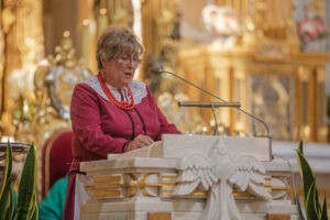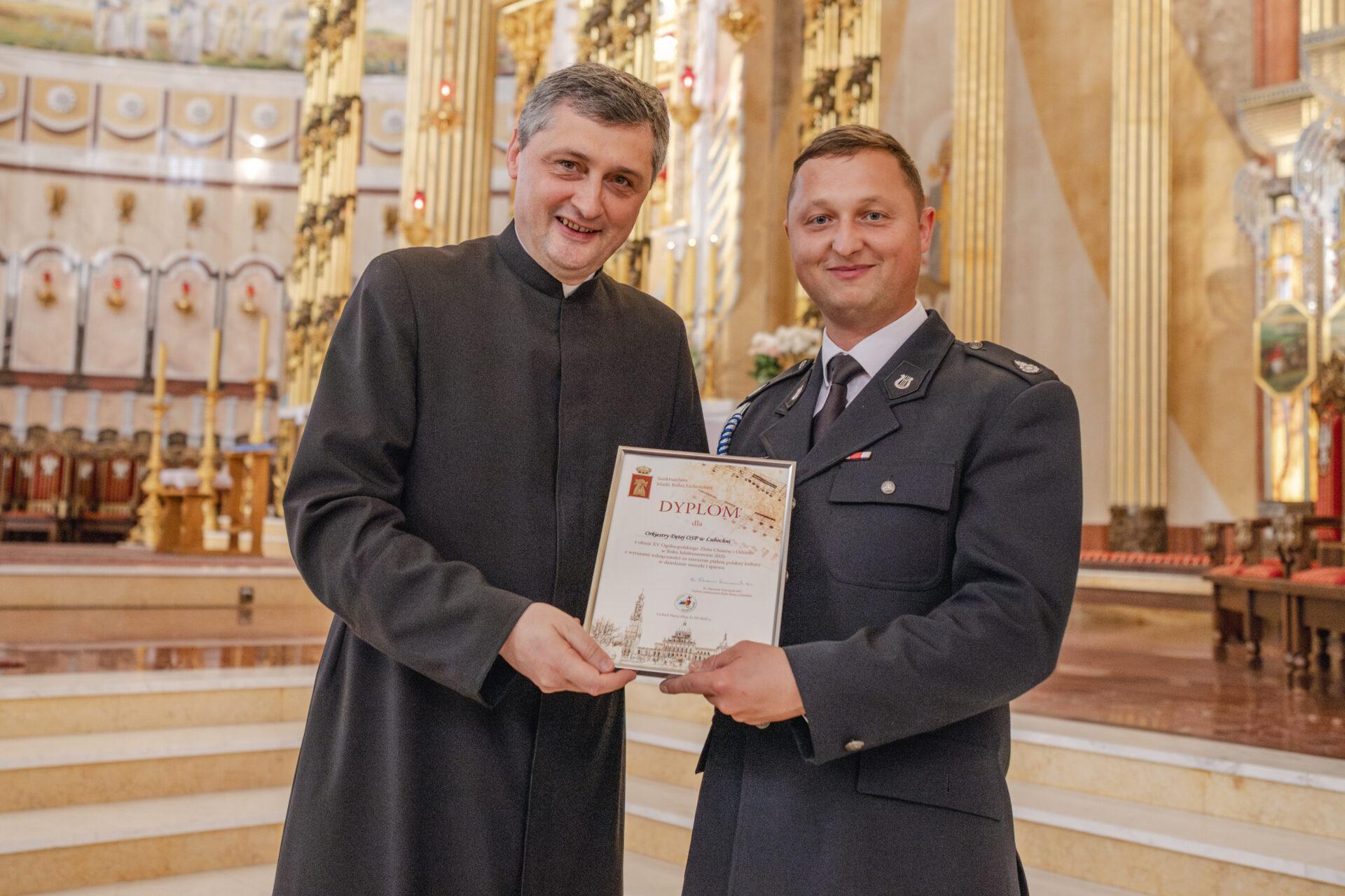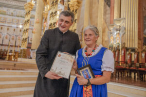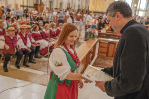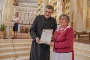 Uroczystość zakończyła się wręczeniem pamiątkowych dyplomów. Kustosz sanktuarium ks. Sławomir Homoncik MIC skierował szczególne wyrazy wdzięczności dla wieloletniej organizatorki Zlotu pani Leonardzie Bogdan, podkreślając jej zaangażowanie i trud oraz zasługi dla szerzenia piękna polskiej kultury w dziedzinie muzyki i śpiewu.
