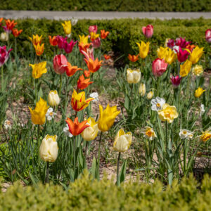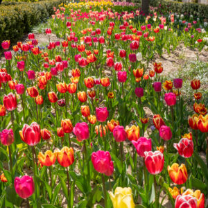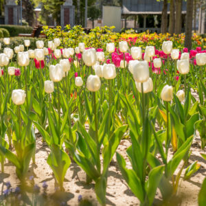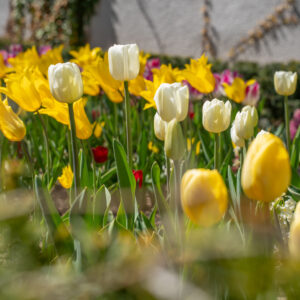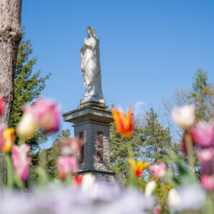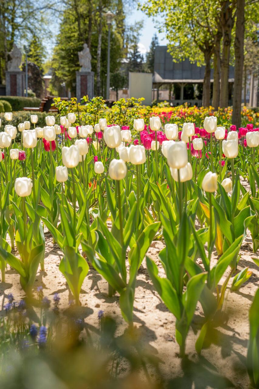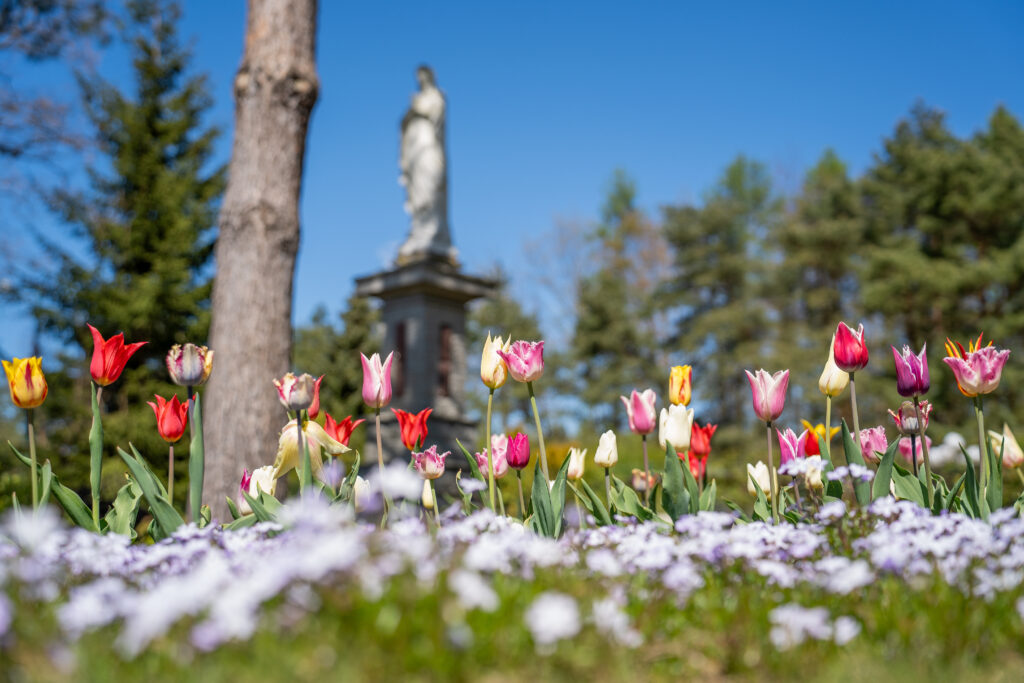 W „Zakątku Maryi” nieopodal Domu Pielgrzyma „Arka”, gdzie w okresie letnim odbywają się koncerty, zakwitły przepiękne tulipany. Wyrosły one z cebulek, które z okazji Dnia Seniora, jesienią minionego roku, były zaniesione w darach ołtarza podczas uroczystej Mszy św., a następnie zasadzone przez dzieci z okolicznej Szkoły Podstawowej.