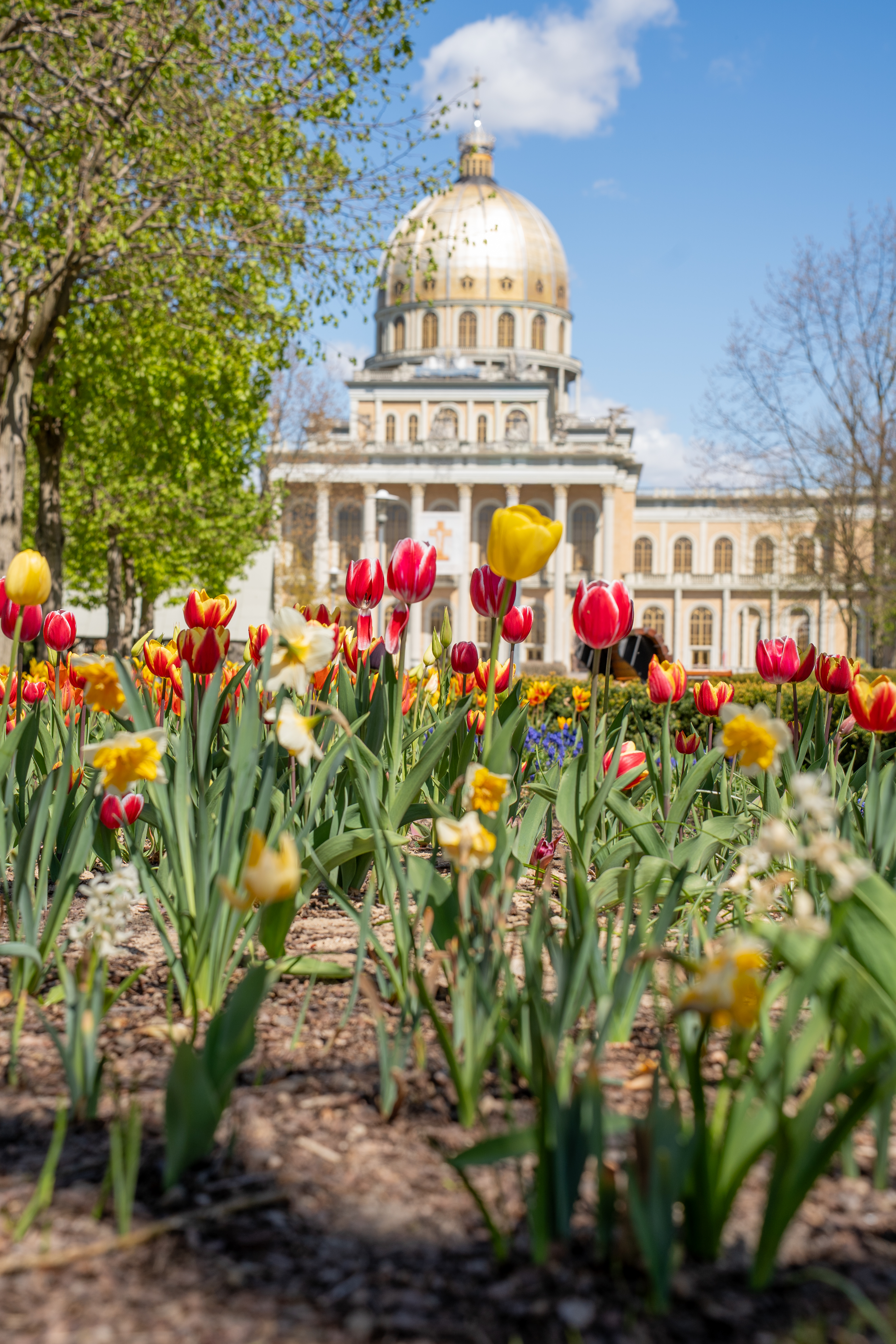 Licheńskie sanktuarium to przede wszystkim przestrzeń modlitwy, wyciszenia, sięgania do wnętrza ludzkiego serca z całym jego bogactwem myśli i odczuć. To również miejsce, które służy odkrywaniu miłości Boga, czemu tutaj towarzyszy rzecz jasna najlepsza z Matek. Maryi bardzo zależy na każdym i każdej z nas. Zależy Jej na pięknym i zjednoczonym z Bogiem życiu każdego człowieka. Pomagać temu może między innymi otaczająca licheński Dom Matki przyroda, która właśnie na przełomie kwietnia i maja rozkwita wielością barw wiosennych kwiatów i krzewów. Akurat w tym czasie różnorodnością kolorów i kompozycji zakwitły tulipany, narcyzy, hiacynty, szafirki, cebulice… Kwitną między innymi ozdobne śliwy, wiśnie, jabłonie, wczesne tawuły, forsycje, magnolie i migdałowce. Za chwilę swoim pięknem zaczną czarować lilaki (bzy).
