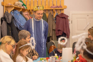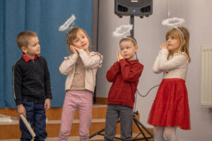 Niespodzianką, o której dzieci wcześniej nie wiedziały, były krótkie jasełka. Choć miały one kameralną formę, ich głównym celem było zwizualizowanie historii narodzin Jezusa, którą dzieci wcześniej poznały podczas katechezy. W rolę Trzech Króli wcielili się księża